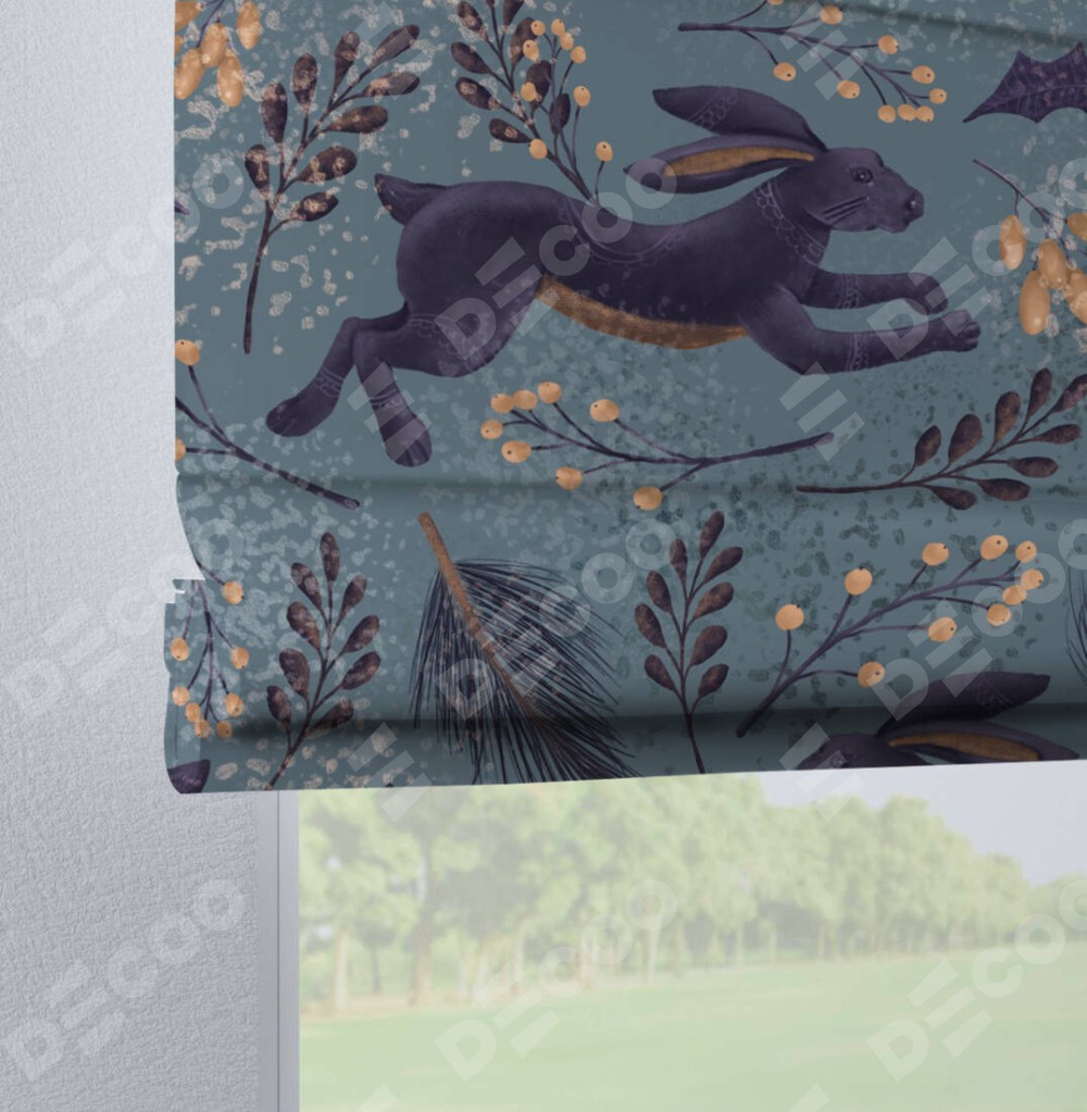 Римская штора на петлях «Дарк арт зайцы» отлично подойдёт для интерьера: в кухню, в детскую и в спальню.