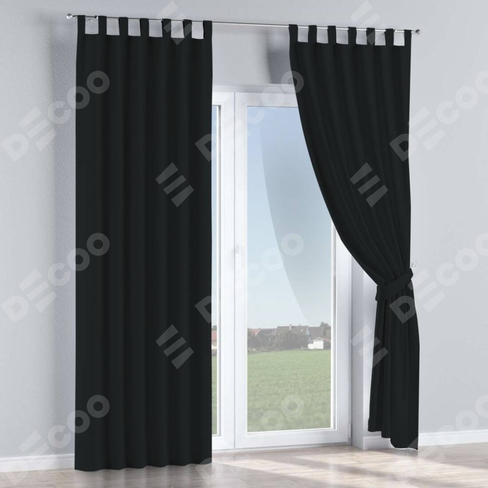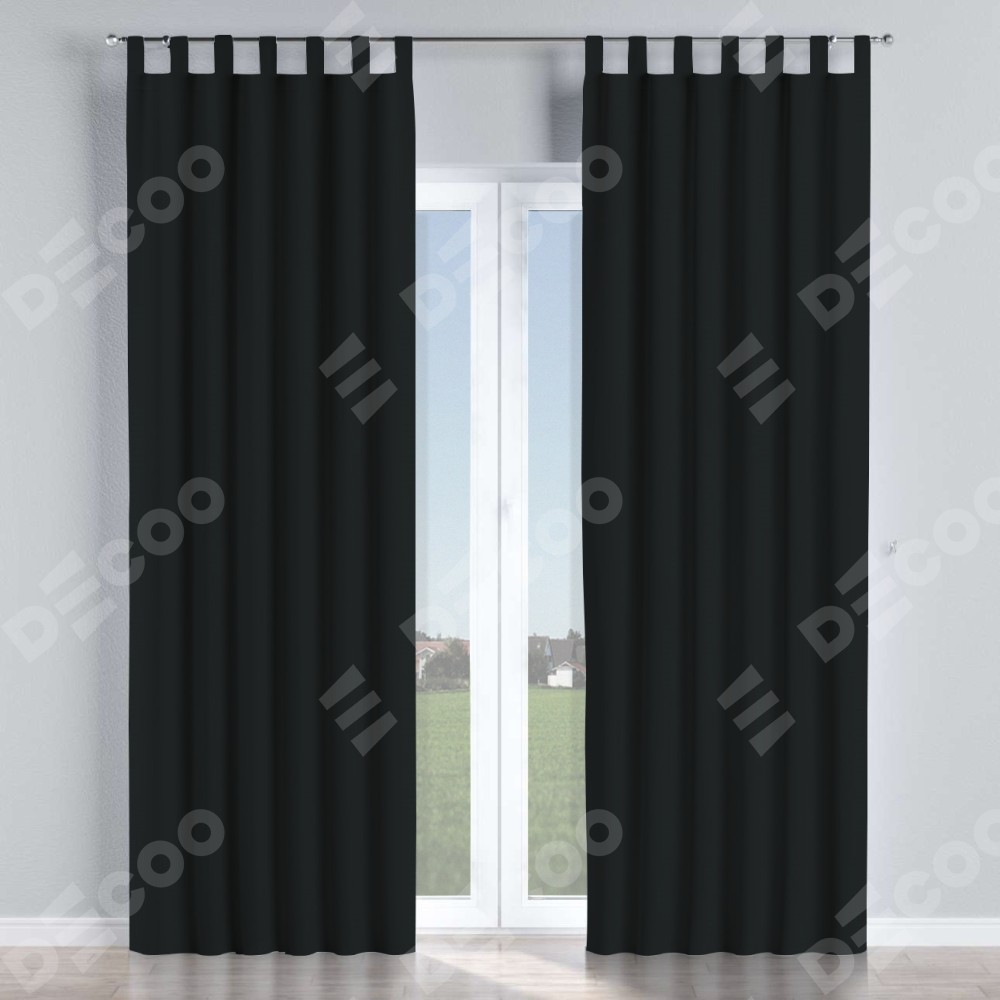 Комплект прямых штор, от производителя «Cortin», пошиты из ткани блэкаут однотонный черный, артикул ткани 37. Данная модель пошита на петлях, комплектуется на выбор круглым карнизом и подходит для монтажа на стену или потолок. Прямые шторы на петлях шьются по стандарту с коэффициентом 1/2 (на 100 см. ширины проёма 200 см. ширины ткани), отличительным преимуществом данной модели является простой способ монтажа. Достаточно повесить ее на трубу и штора готова!