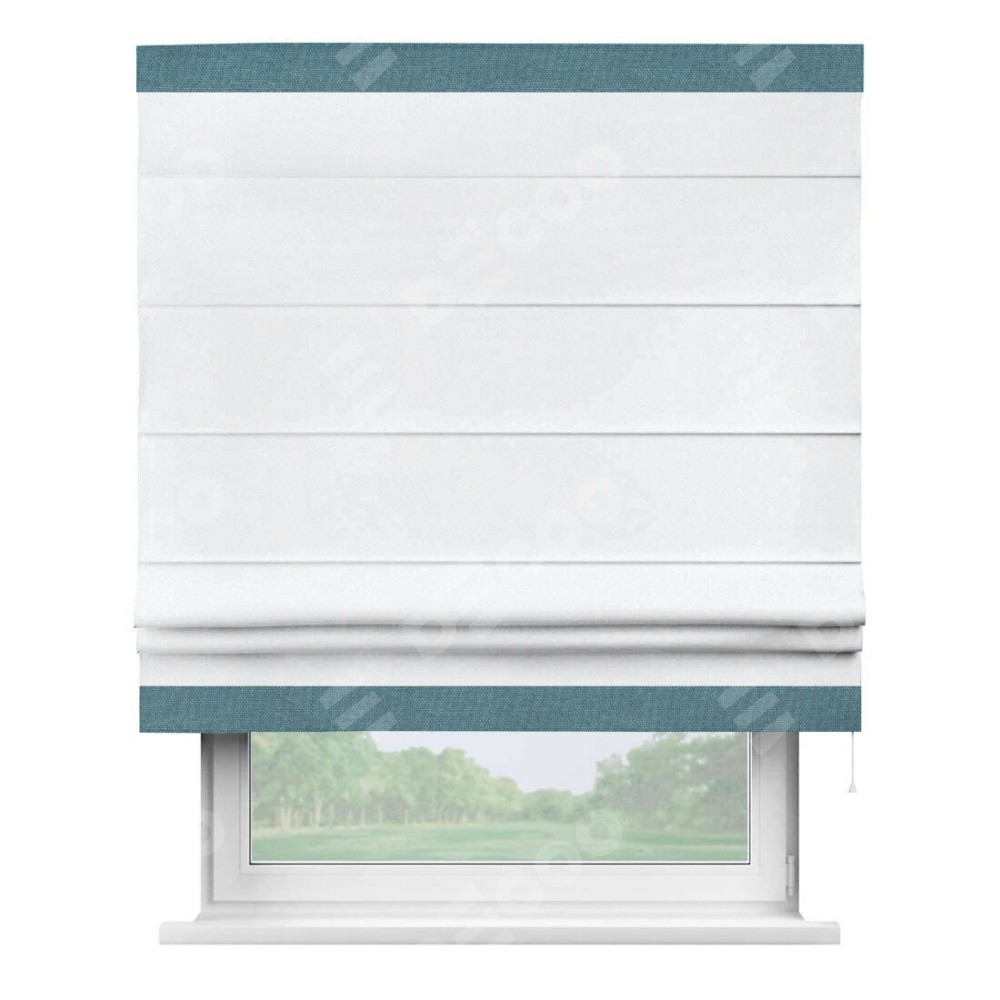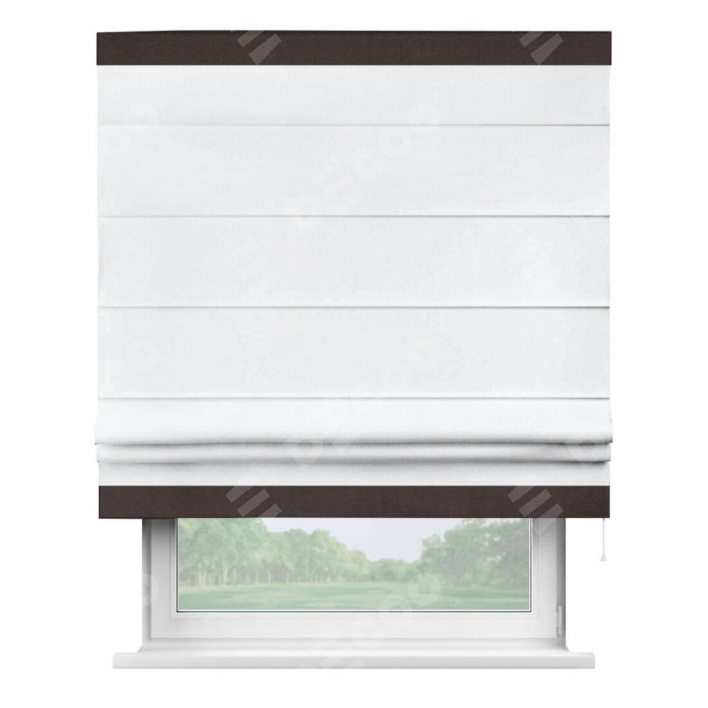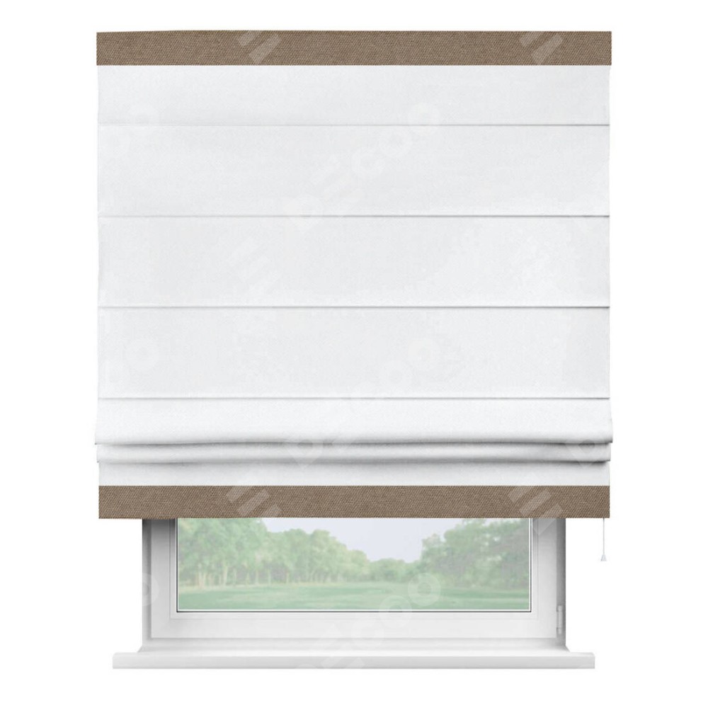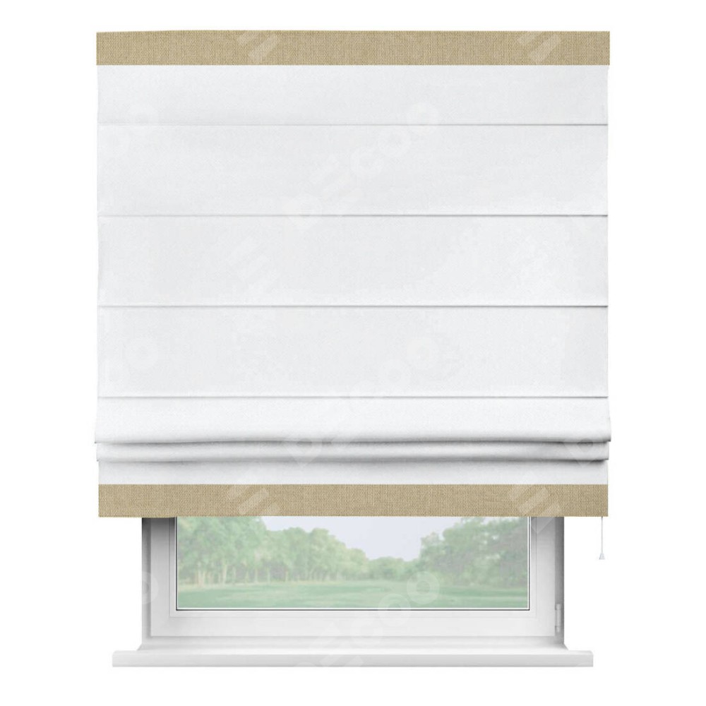 Римская штора «Кортин» для проема, лён димаут белый с кантом Горизонт