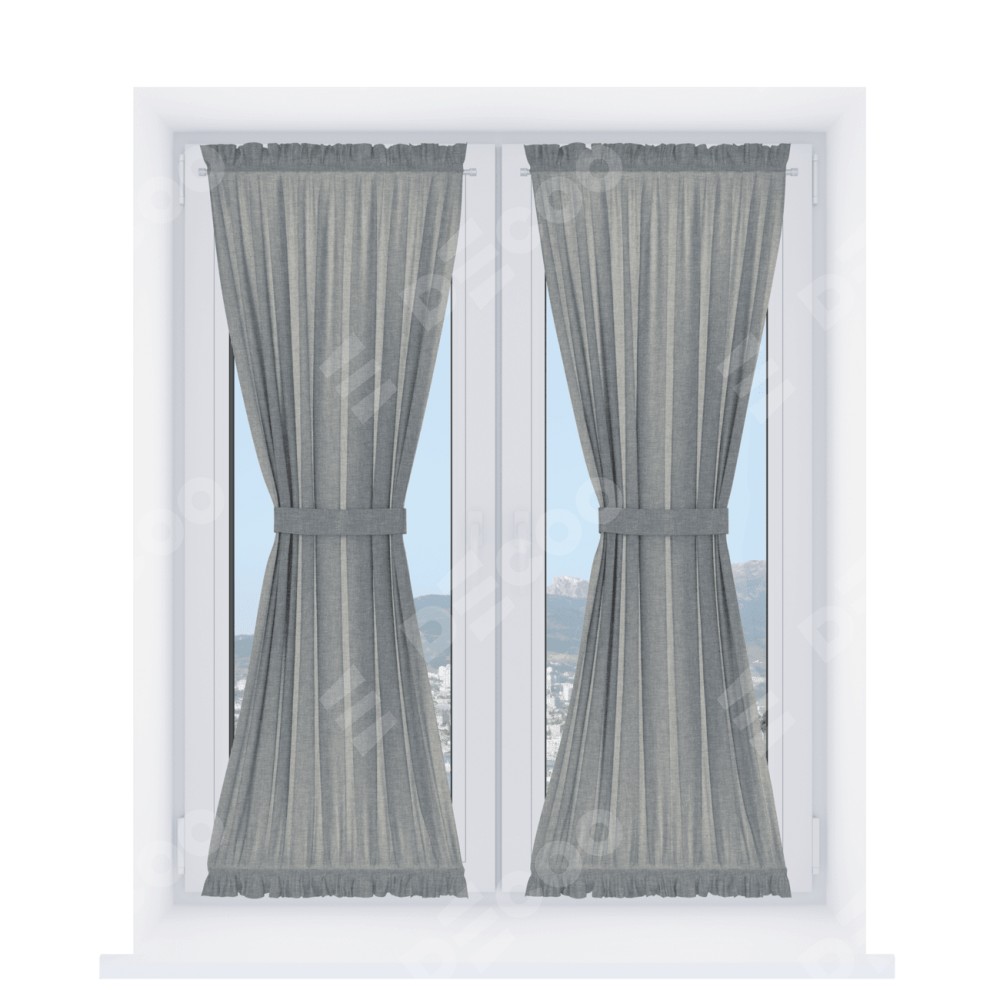 Штора «Песочные часы» производителя «Cortin», используется для створок окон и дверей, пошита из ткани рогожка димаут тёмно-серый, артикул ткани 80418.