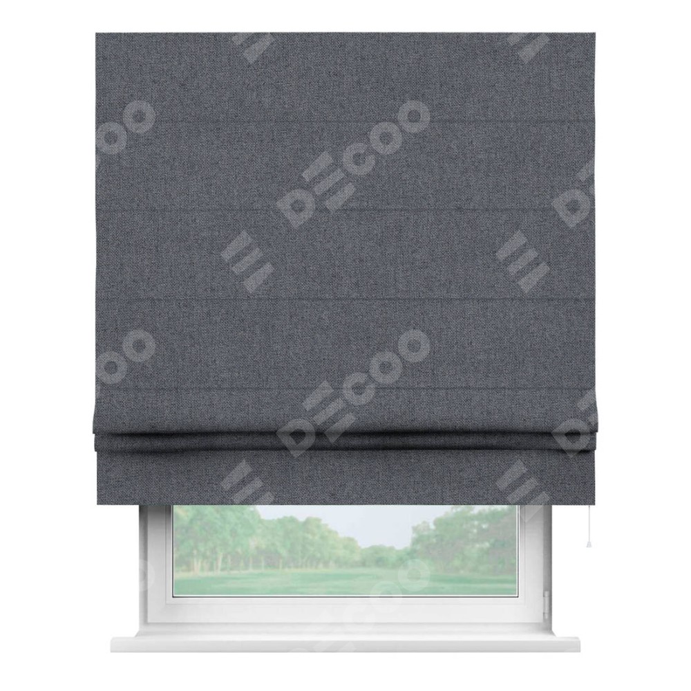 Классическая римская штора производителя «Cortin», пошита из ткани лён блэкаут тёмно-серый, артикул: 139663. Имеет универсальный механизм и подходит для монтажа: на потолок, на стену и в нишу.