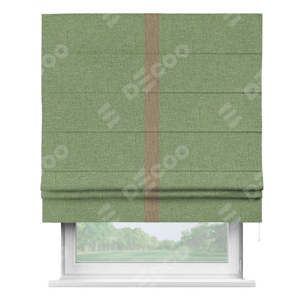 Римская штора «Cortin» для проёма, лён димаут светло-салатовый с кантом Хайвэй