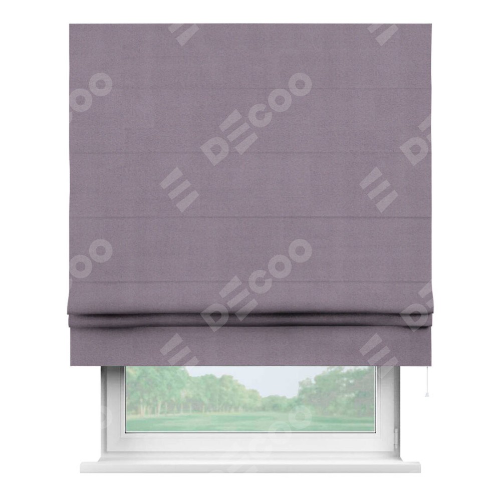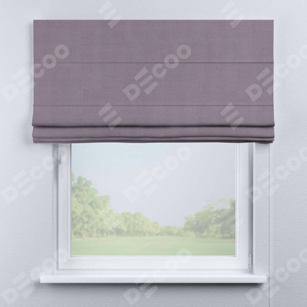 Классическая римская штора производителя «Cortin», пошита из ткани однотонный блэкаут лиловый, артикул: 91577. Имеет универсальный механизм и подходит для монтажа: на потолок, на стену и в нишу.