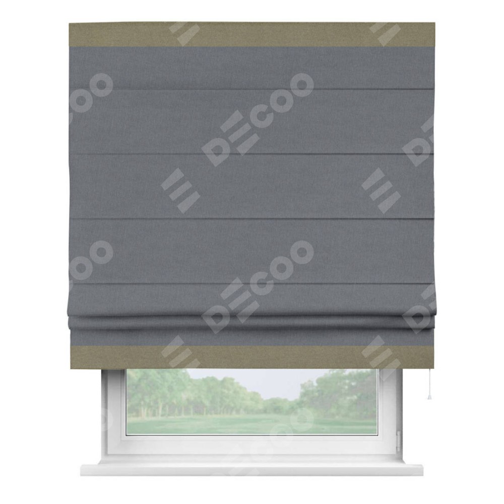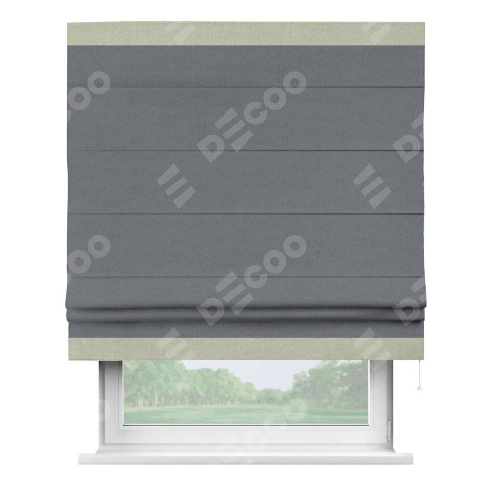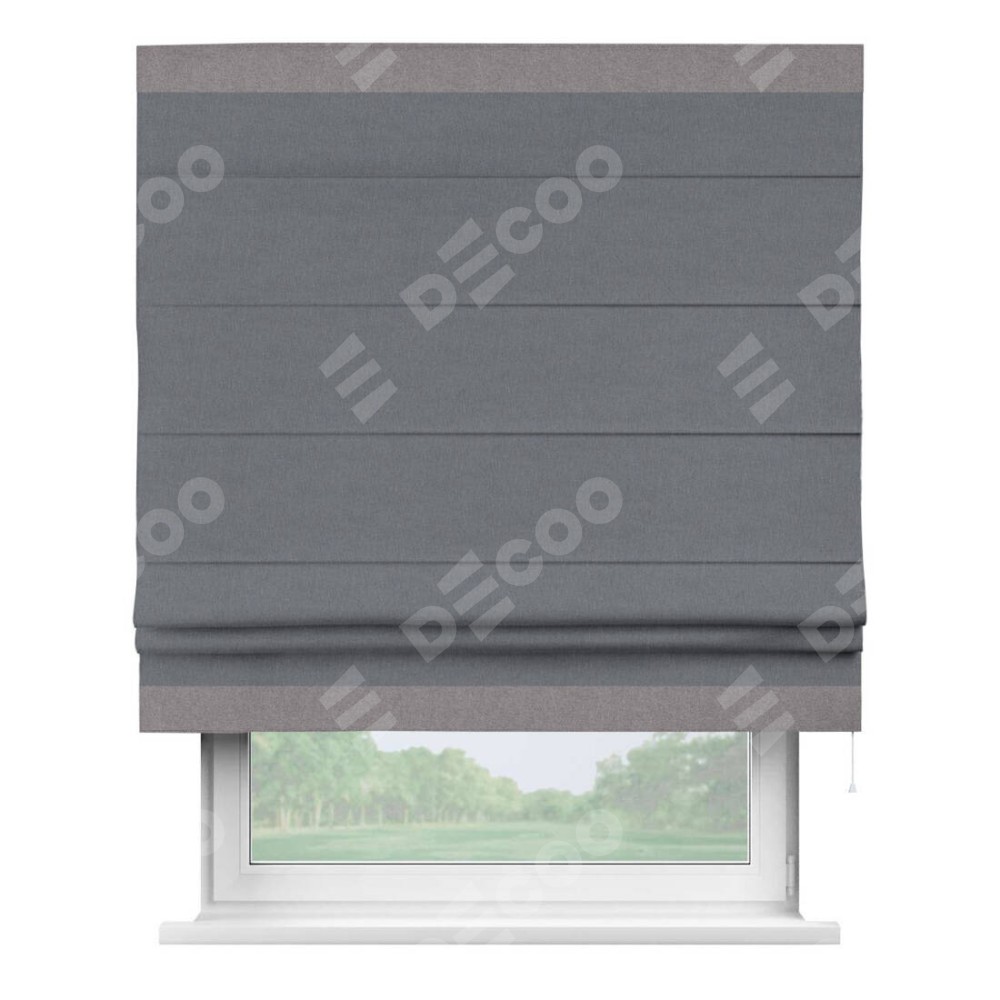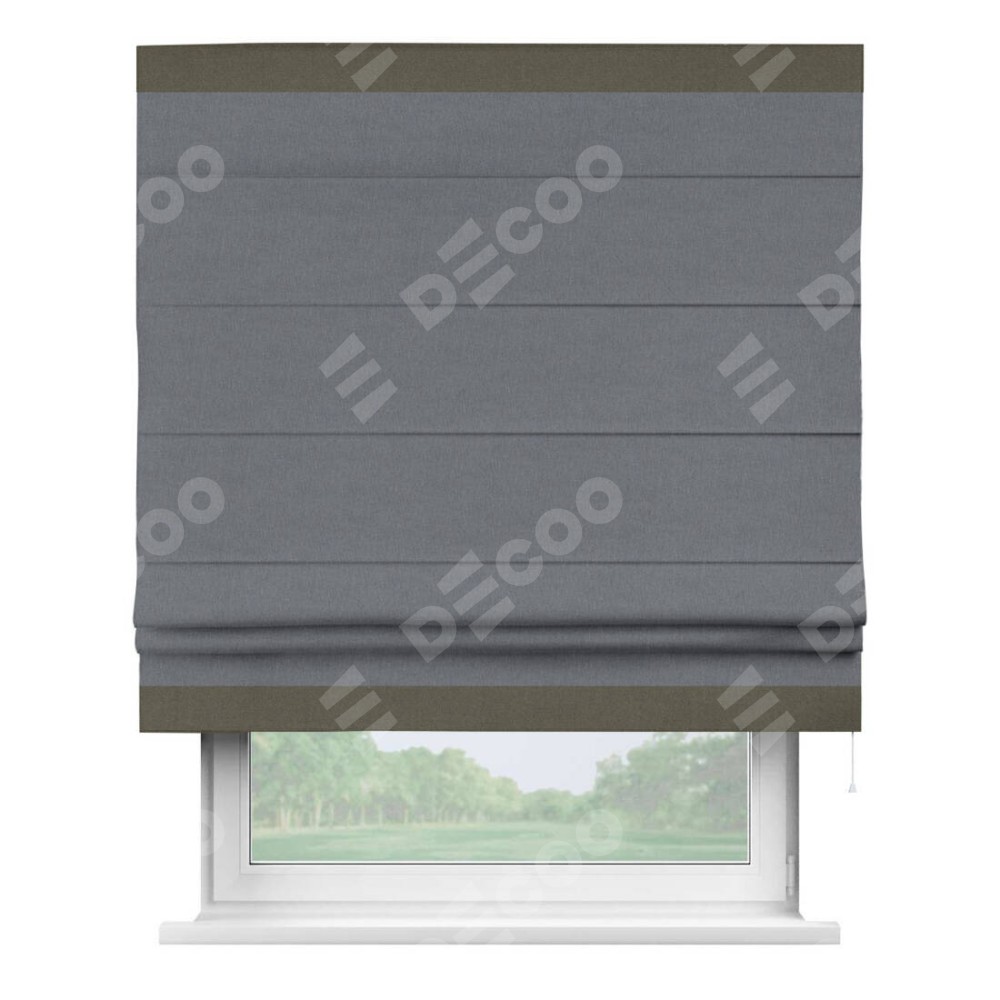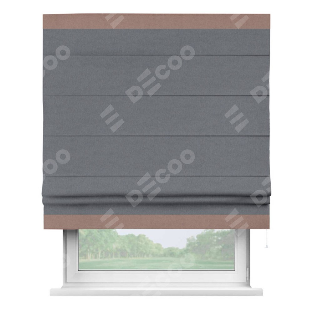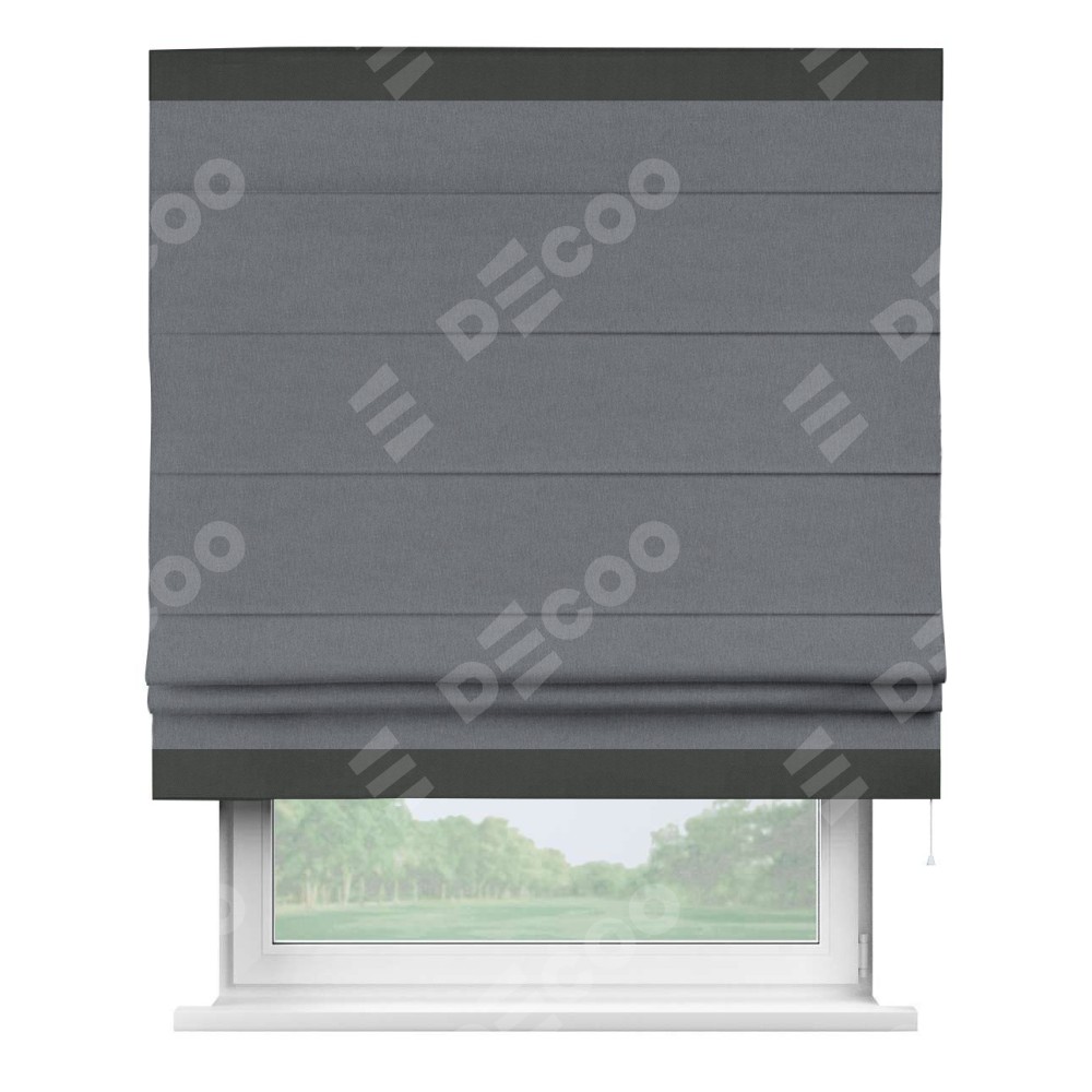 Римская штора «Кортин» с кантом Горизонт, для проема, лён блэкаут тёмно-серый