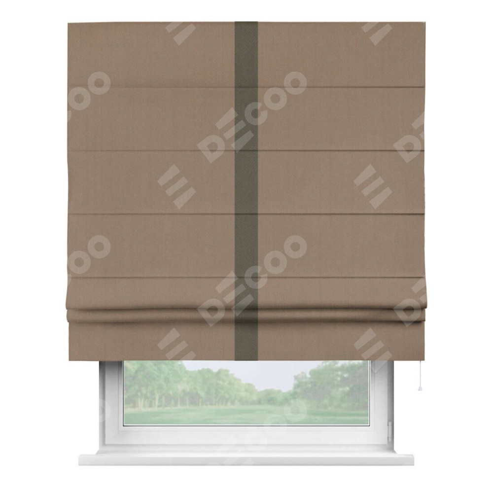 Римская штора «Cortin» для проёма, ткань блэкаут однотонный кофейно-бежевый с кантом Хайвэй