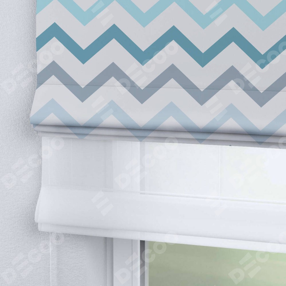 Римская штора «Кортин» день-ночь «Небесный шеврон» отлично подойдёт для интерьера: в кухню, на балкон и подростку в комнату.