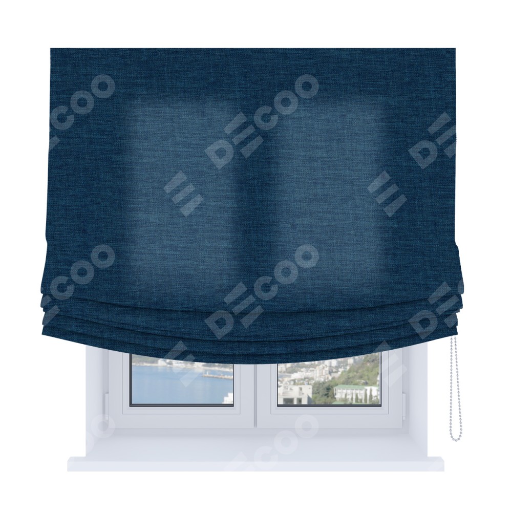 Римская штора «Кортин», лён синий, Soft с мягкими складками