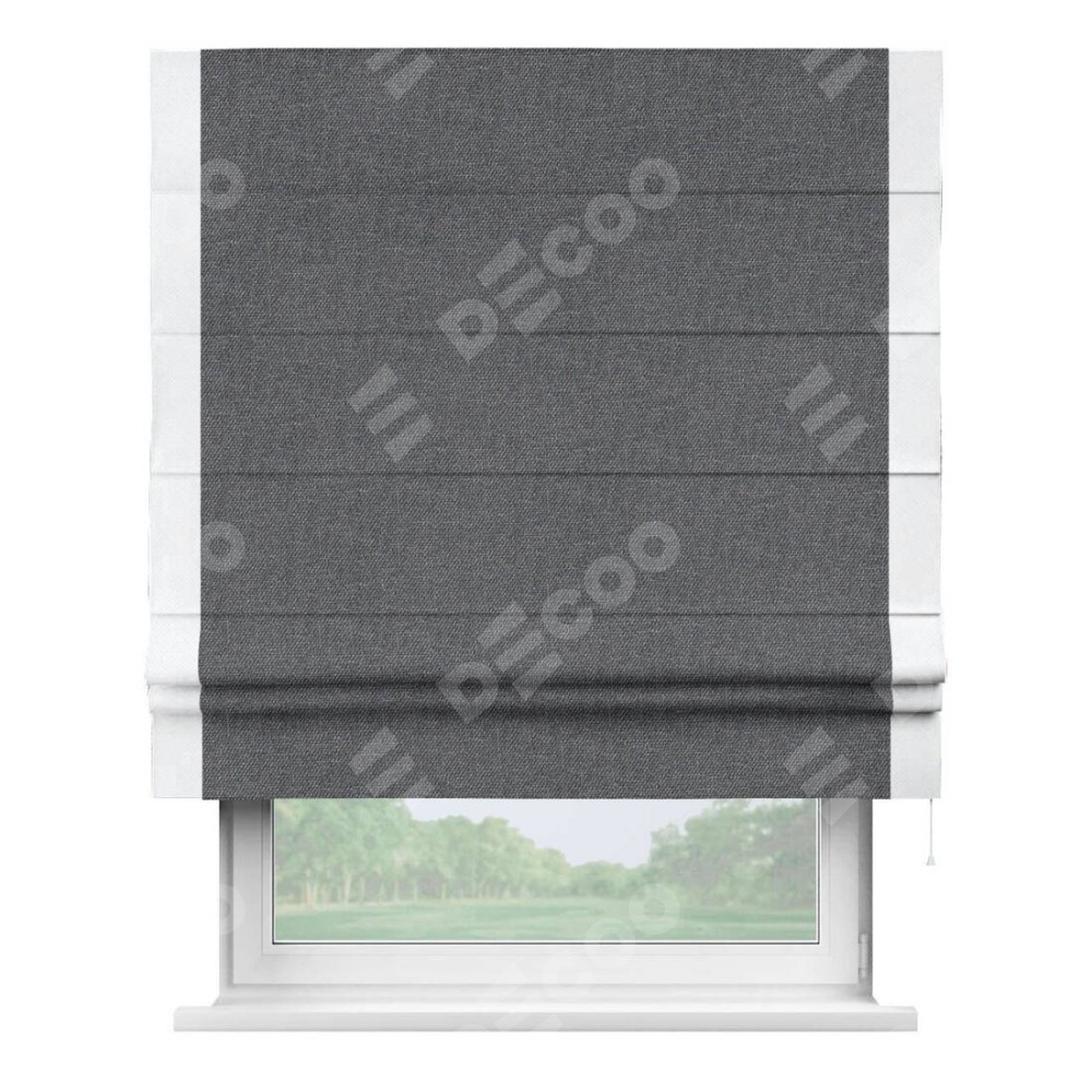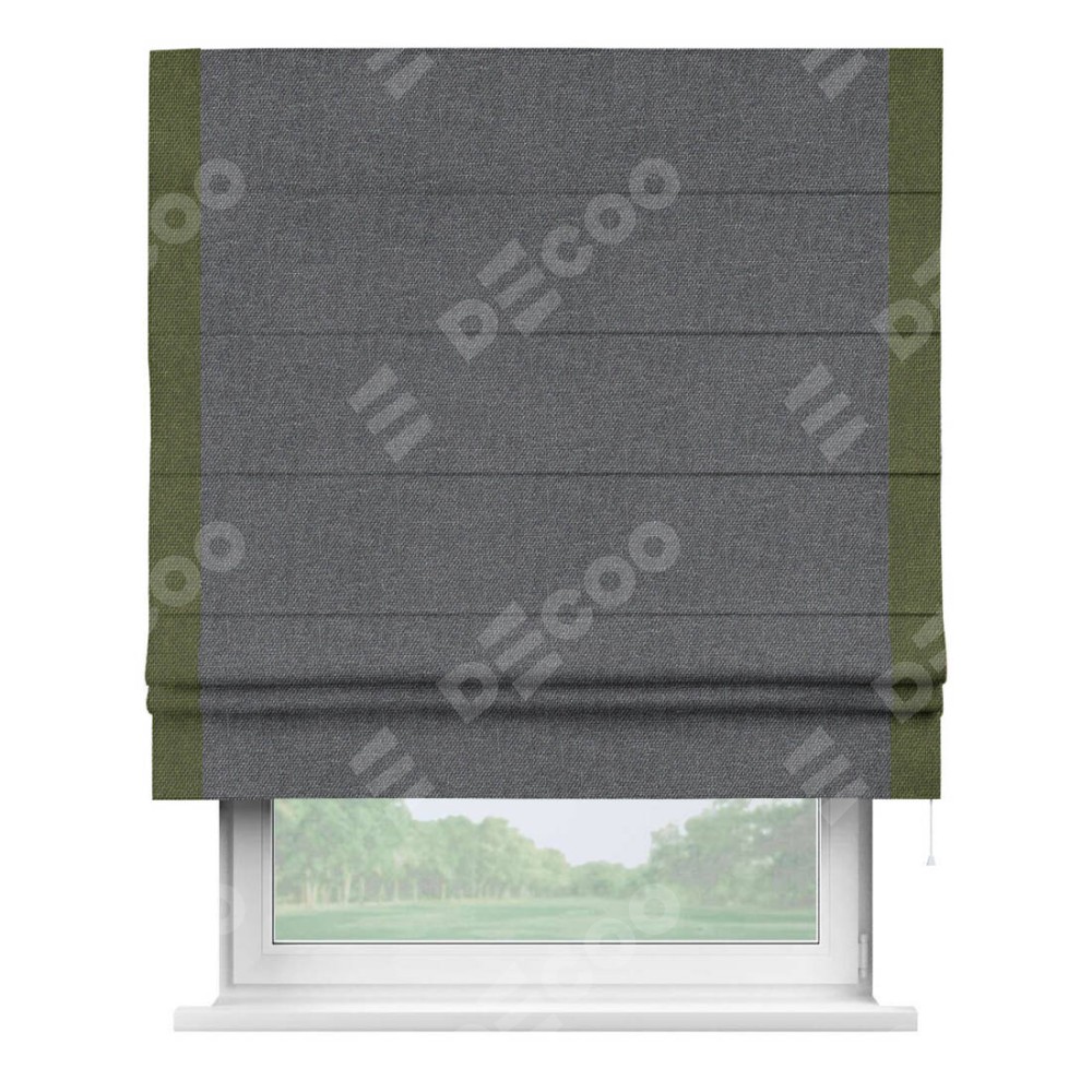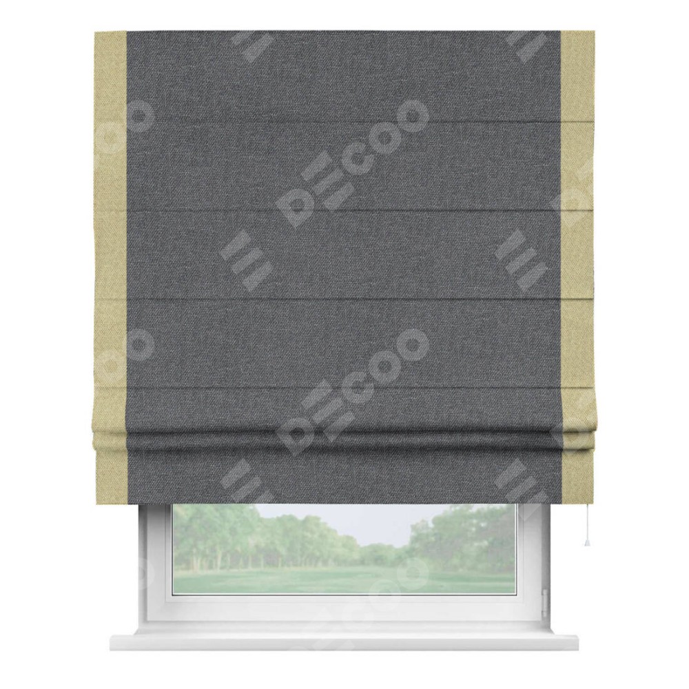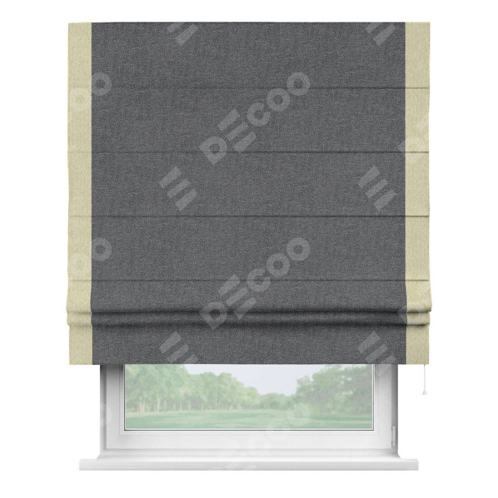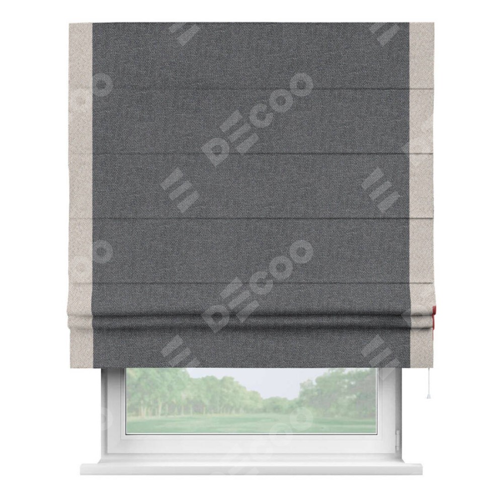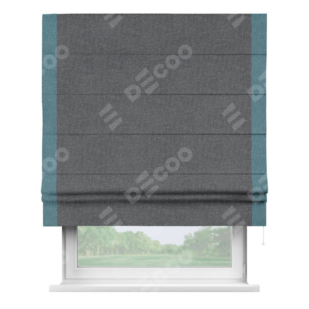 Римская штора «Кортин» для проёма, лён димаут графит с кантом Стрим Дуо