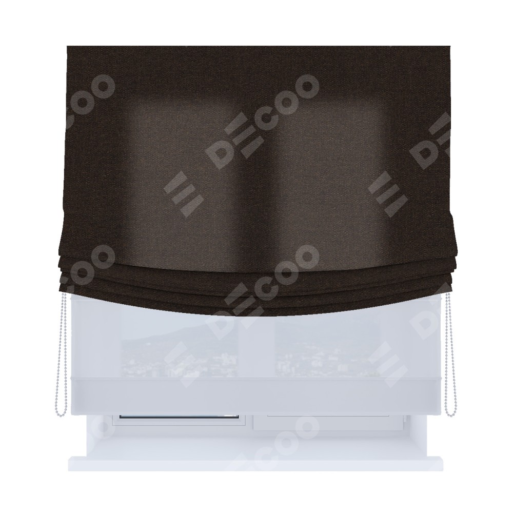 Римская штора «Кортин», лён тёмно-коричневый, день-ночь с мягкими складками