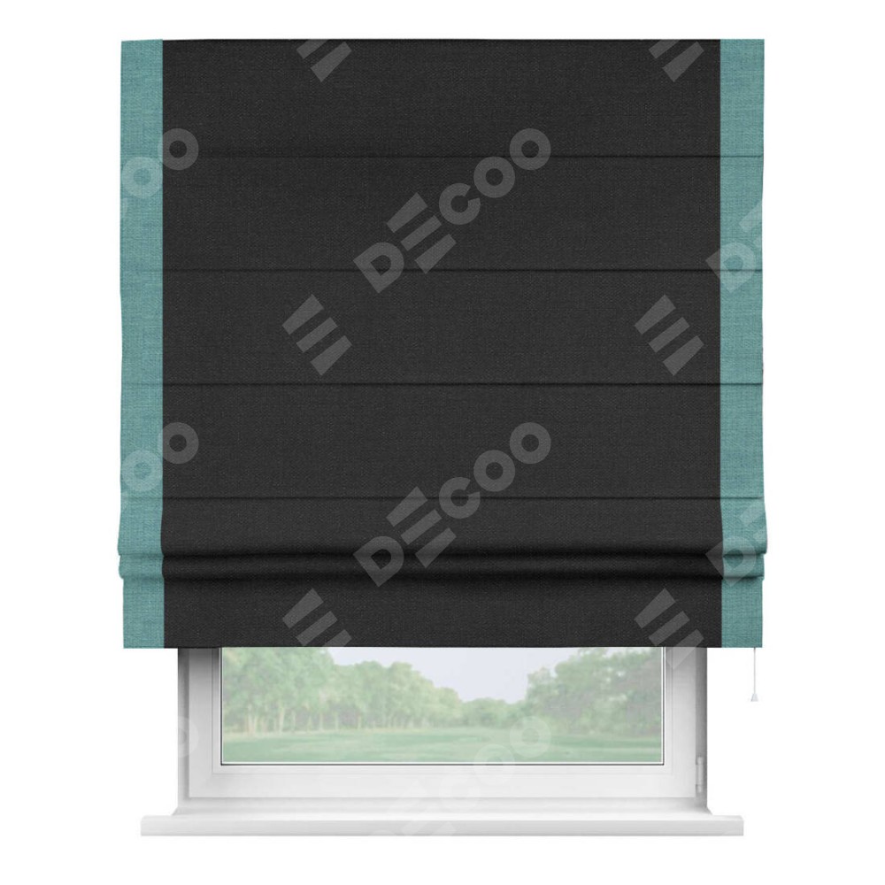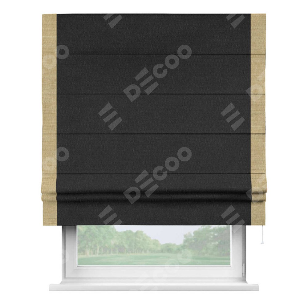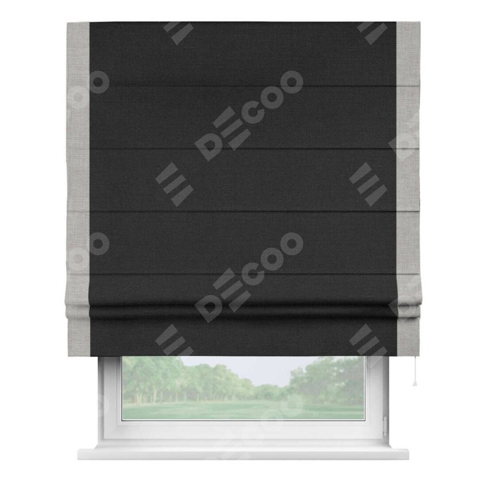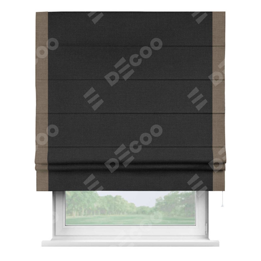 Римская штора «Кортин» для проёма, лён чёрный, с кантом Стрим Дуо