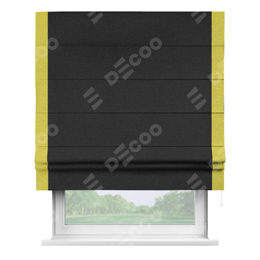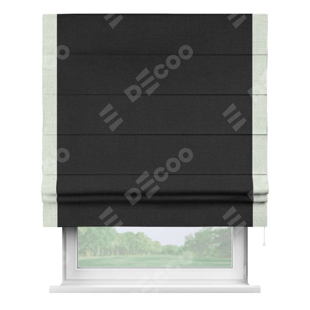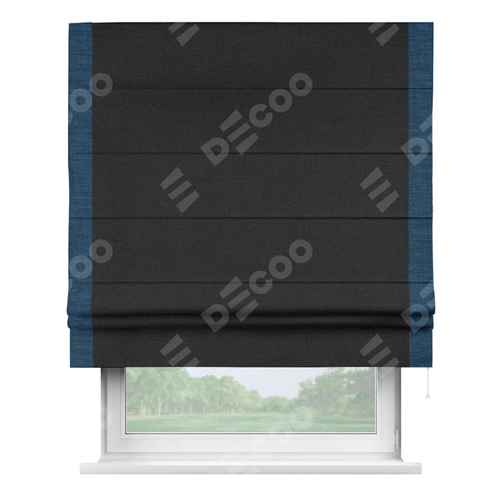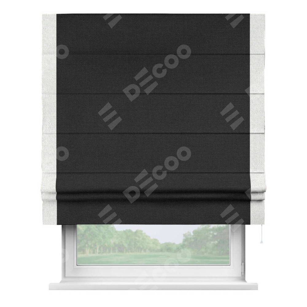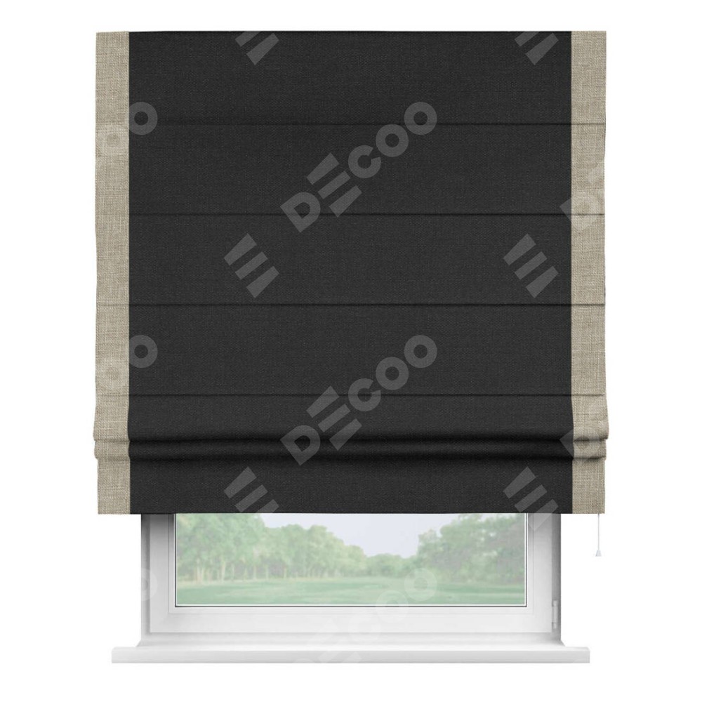 Римская штора «Кортин» для проёма, лён чёрный, с кантом Стрим Дуо