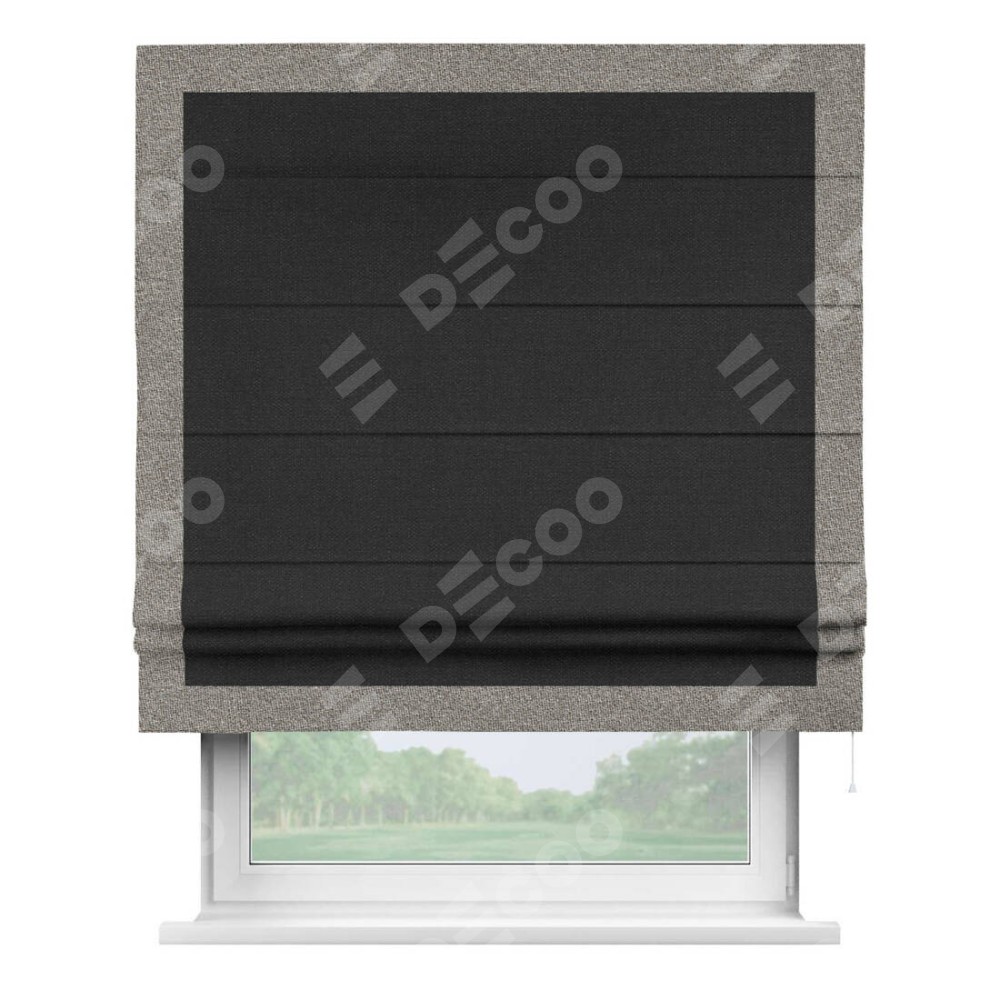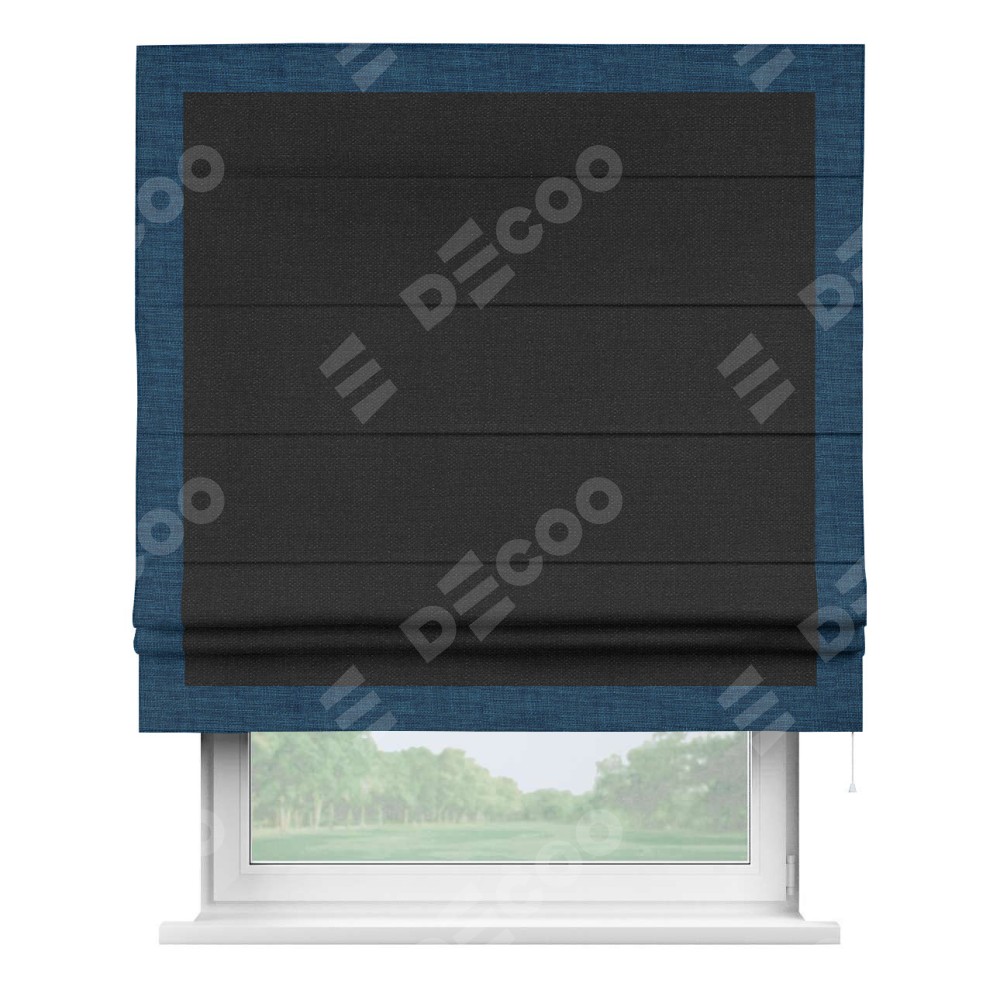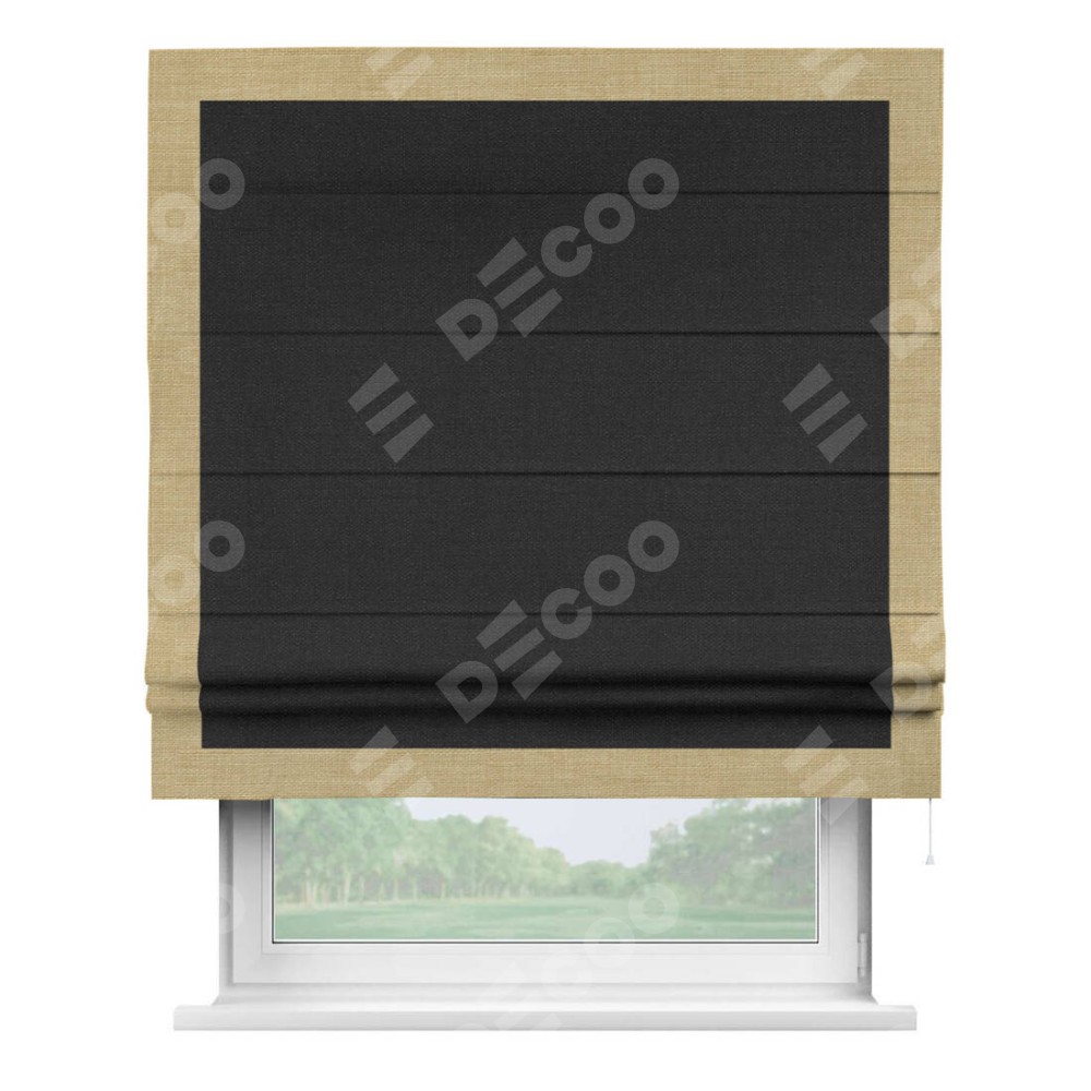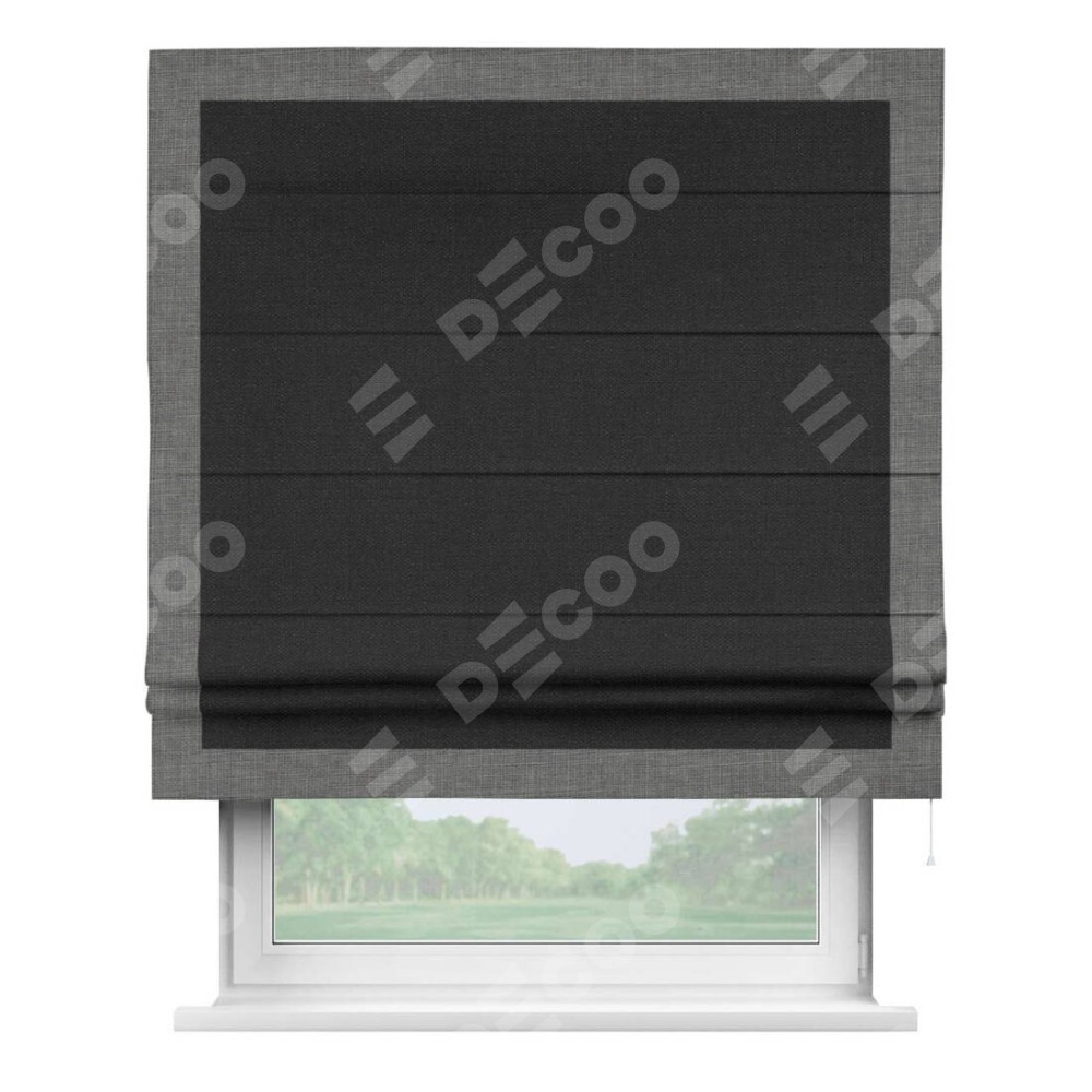 Римская штора «Кортин» для проёма, лён чёрный, с кантом Чесс