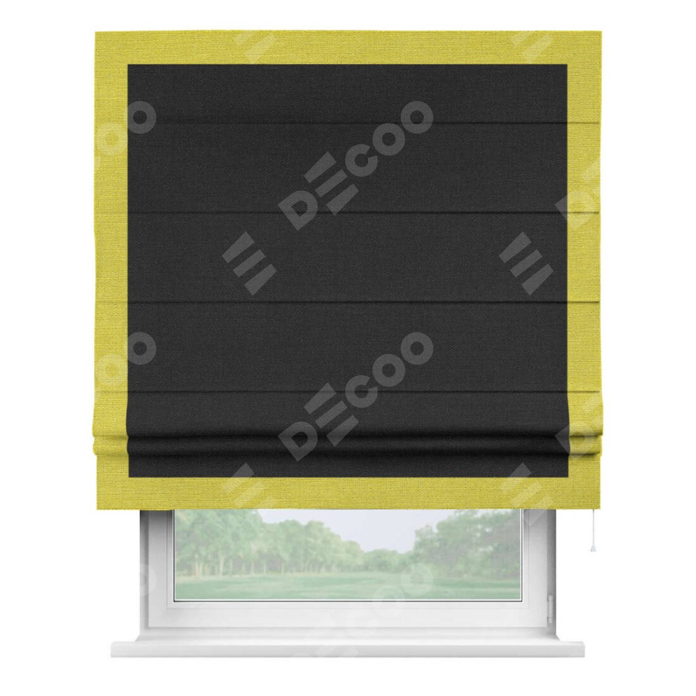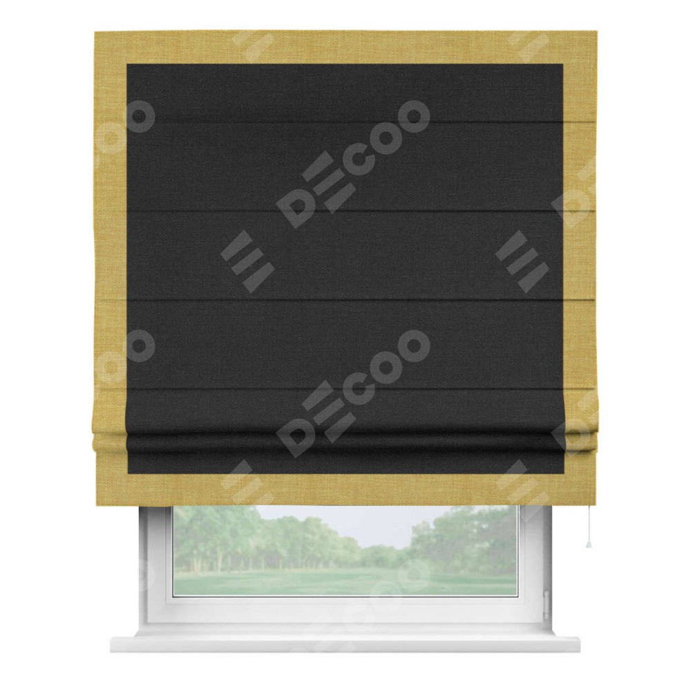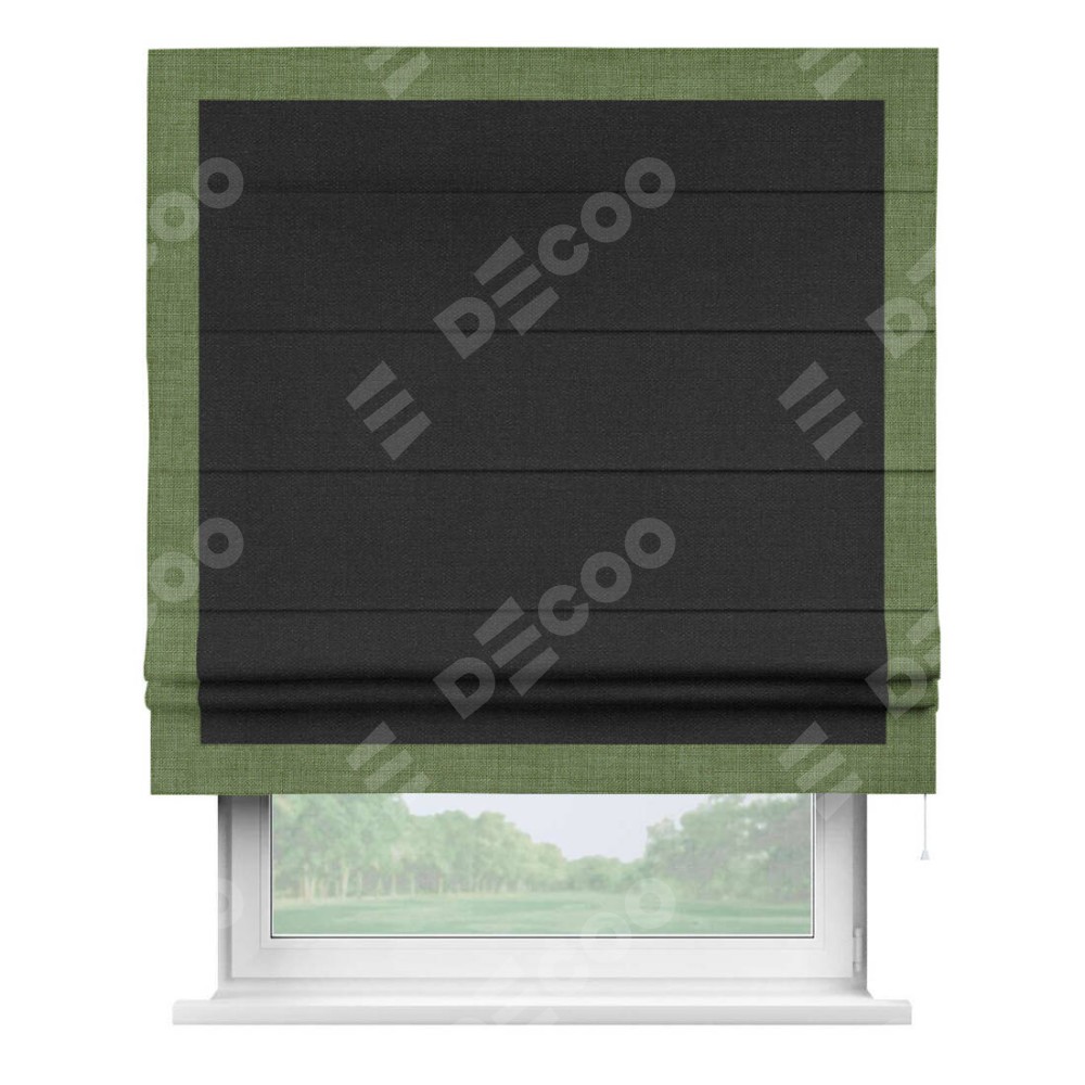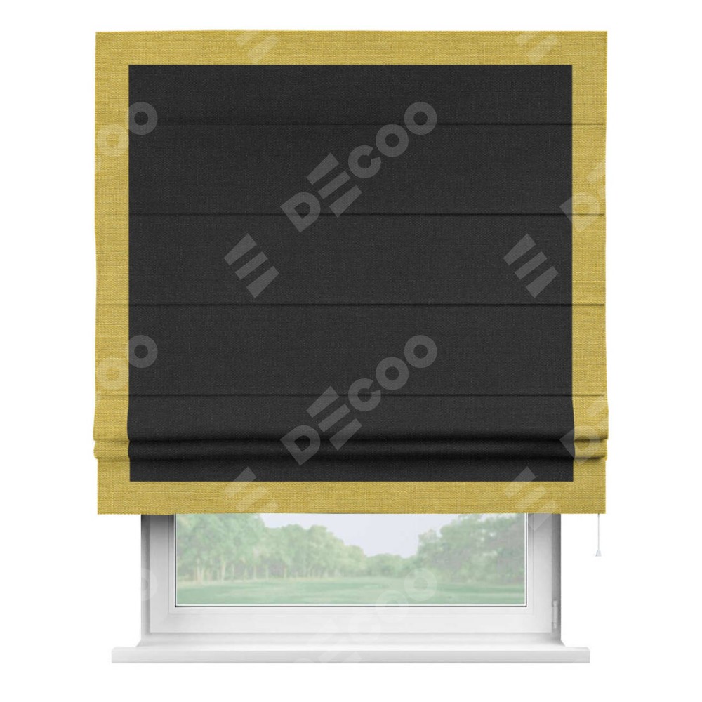 Римская штора «Кортин» для проёма, лён чёрный, с кантом Чесс