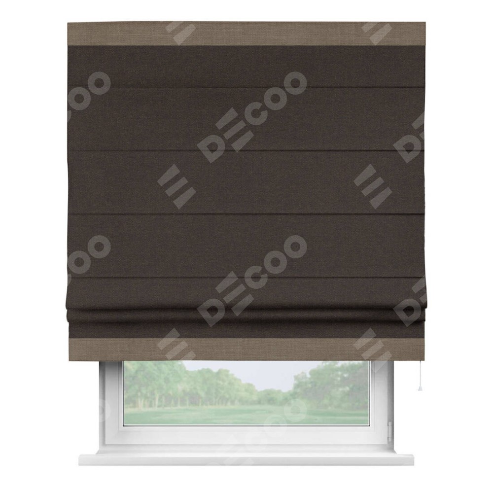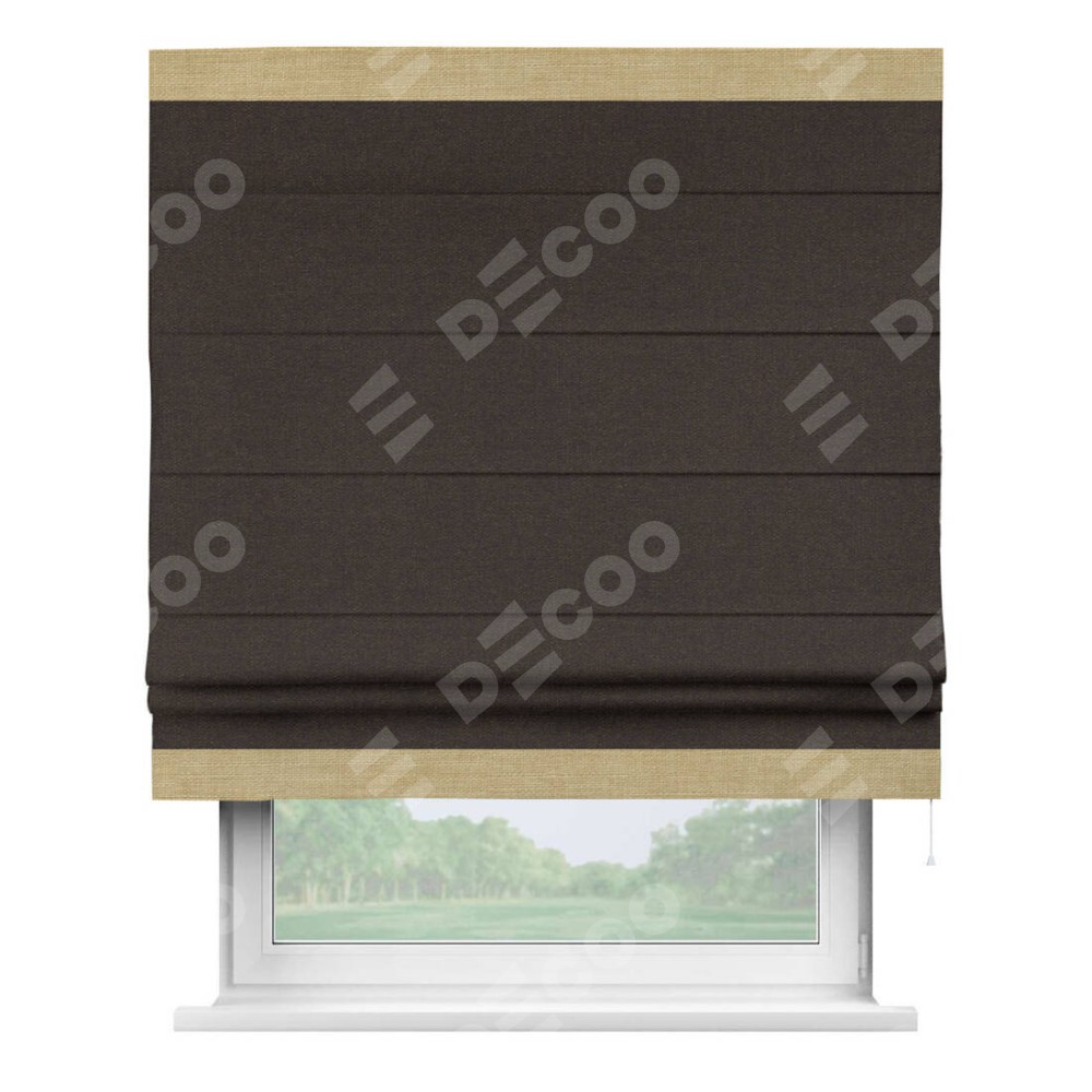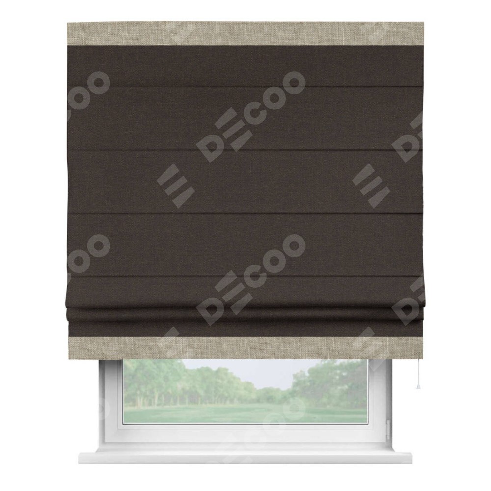 Римская штора «Кортин» для проёма, лён тёмно-коричневый, с кантом Горизонт