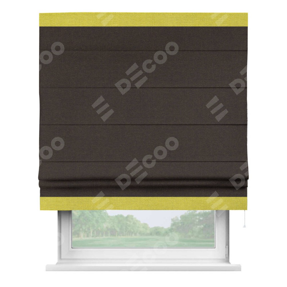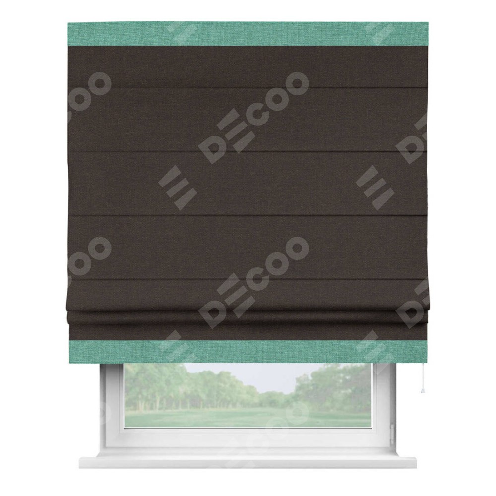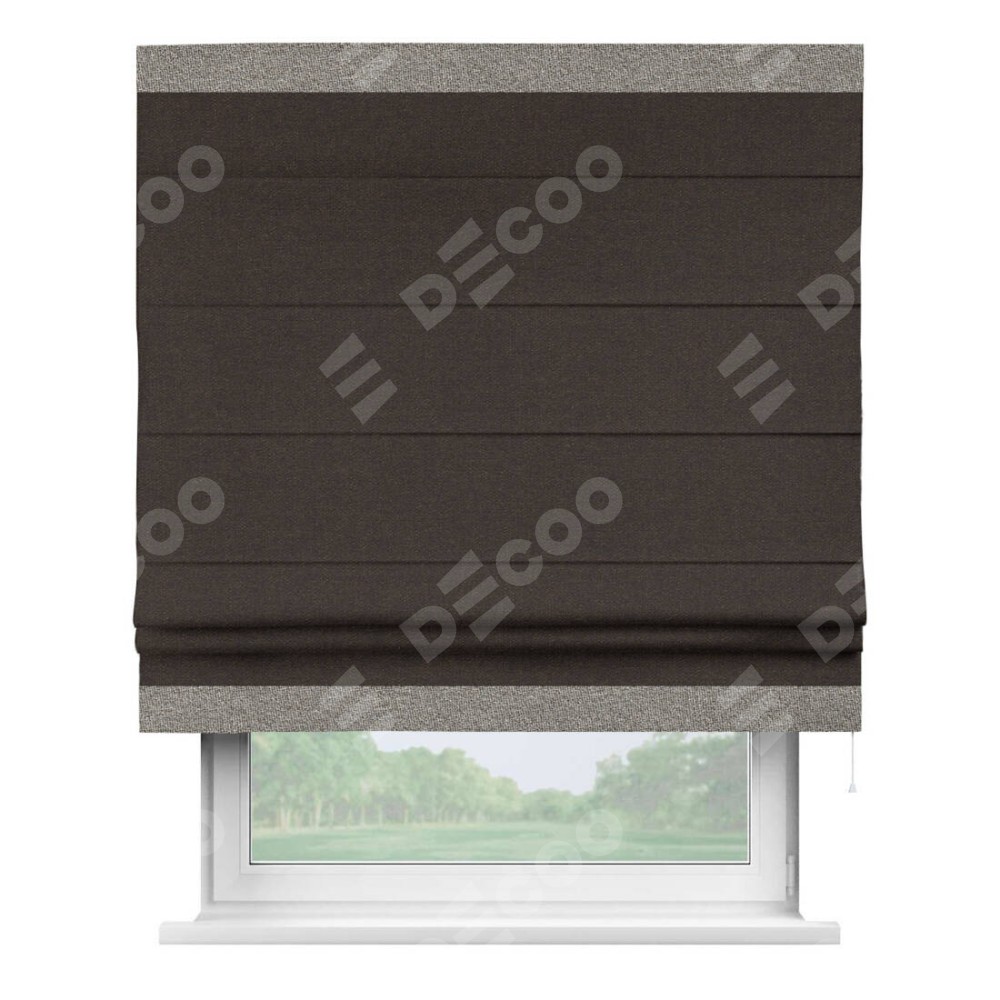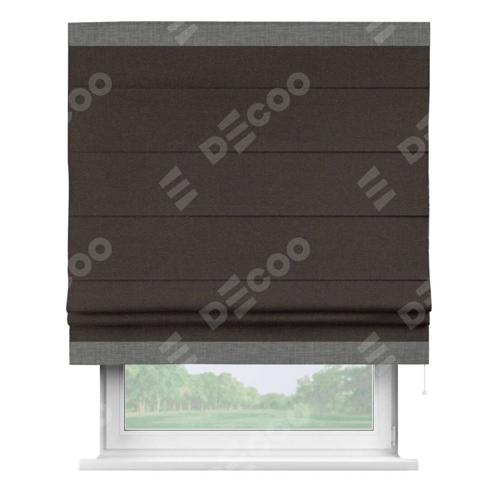 Римская штора «Кортин» для проёма, лён тёмно-коричневый, с кантом Горизонт