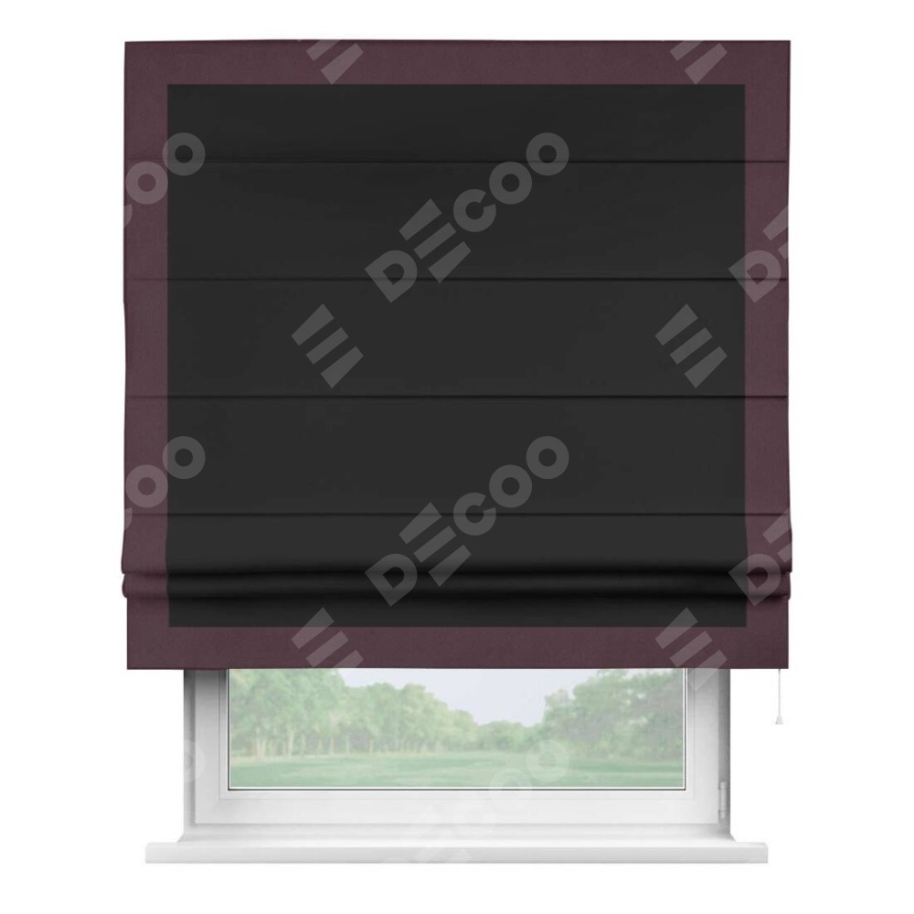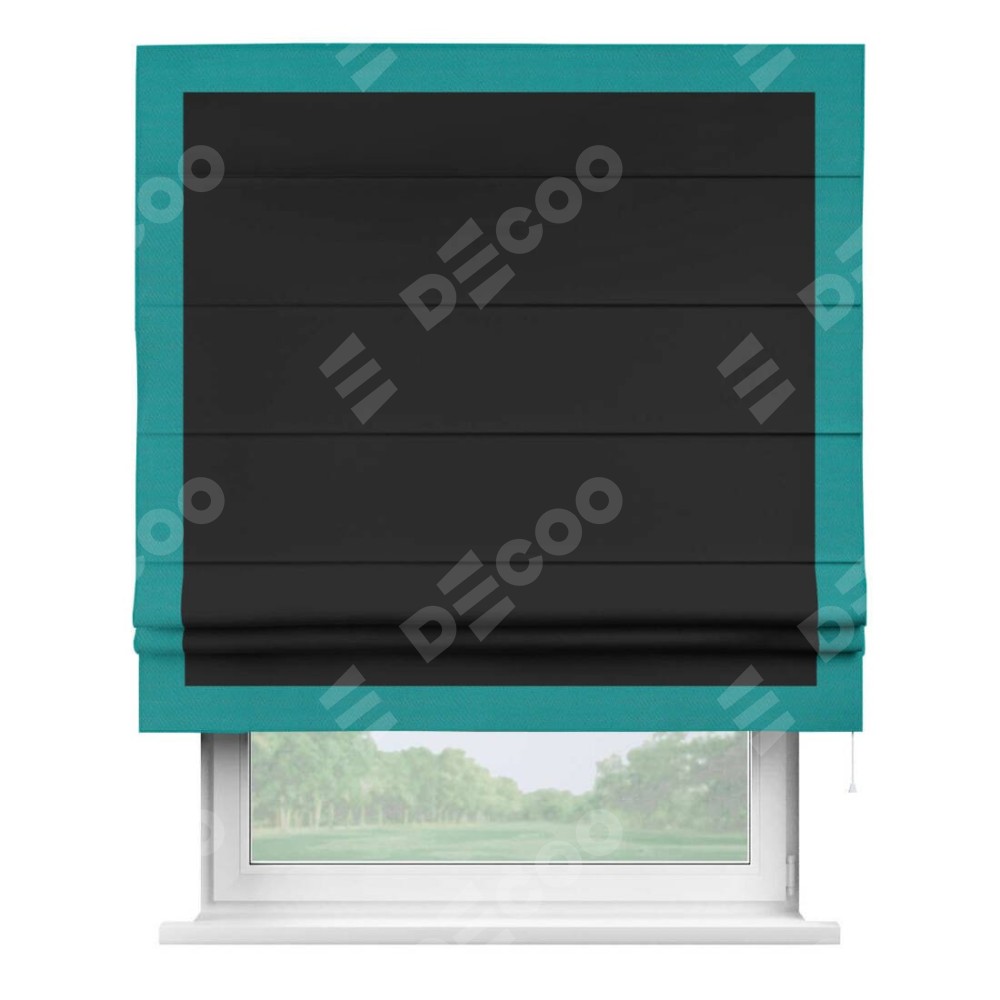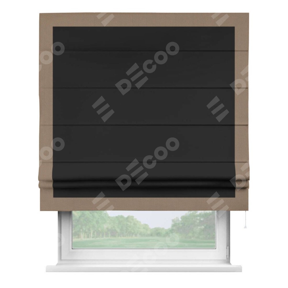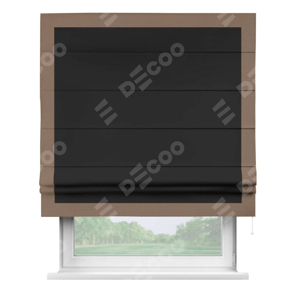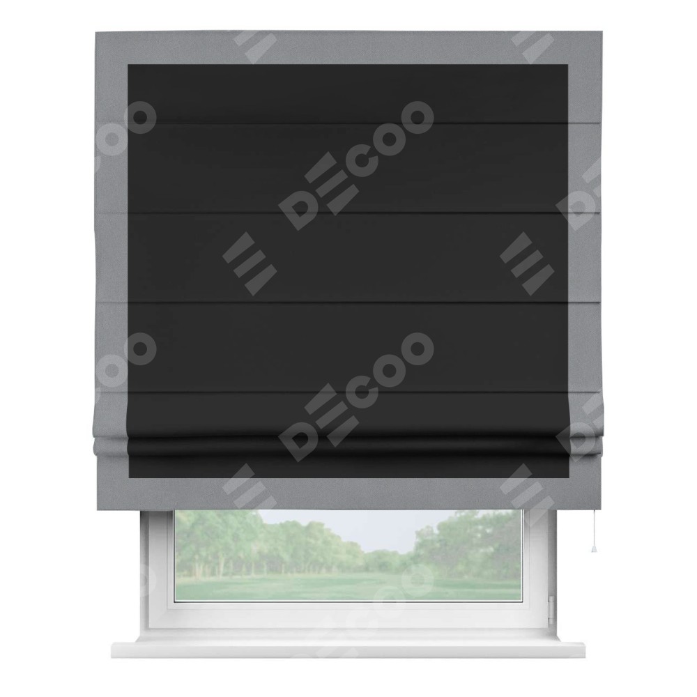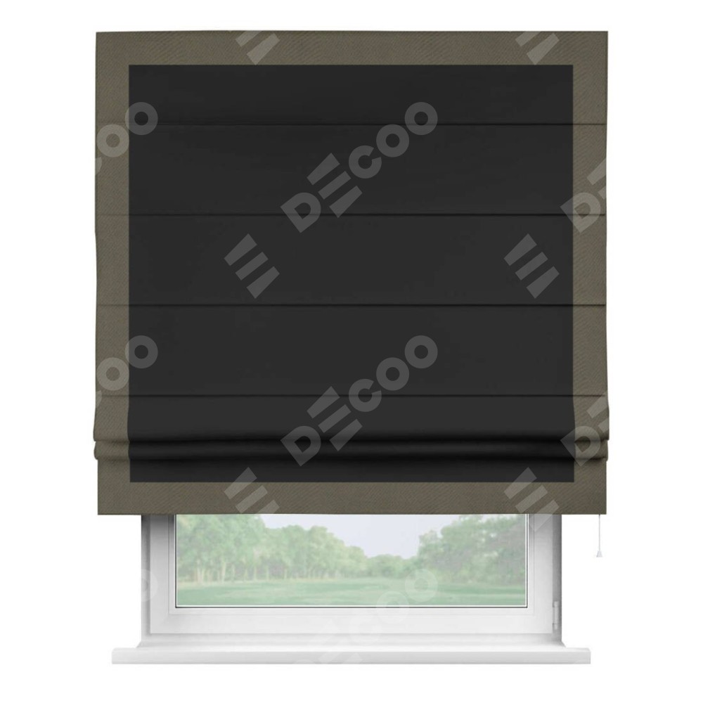 Римская штора «Cortin» для проёма, блэкаут однотонный черный с кантом Чесс