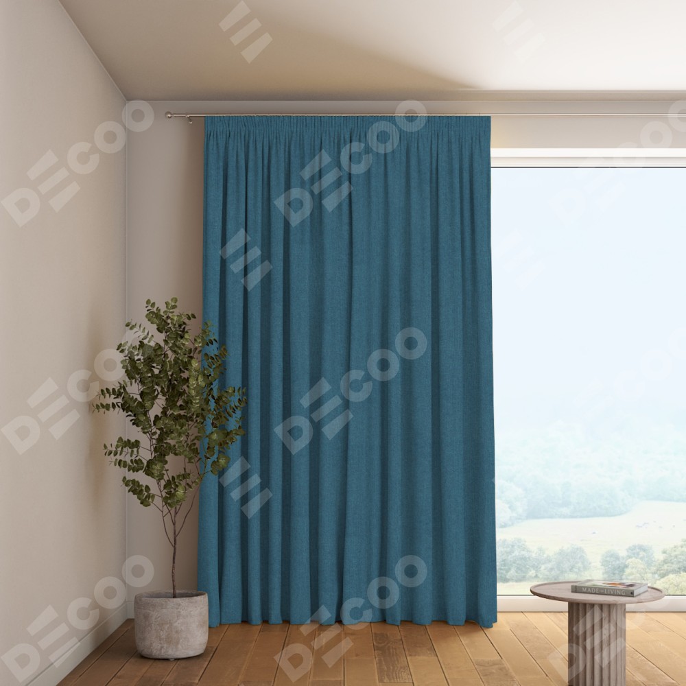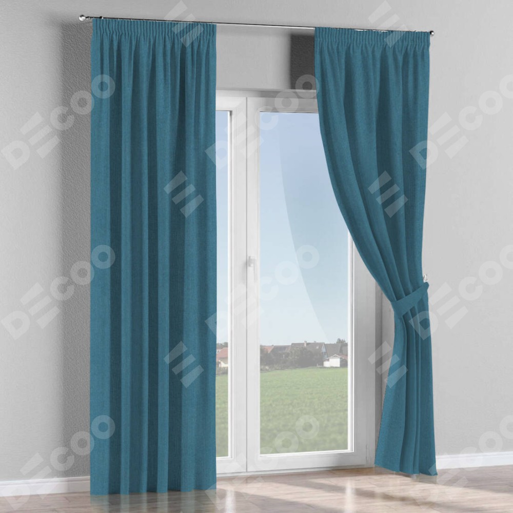 Комплект готовых штор «Cortin» лён блэкаут синий на тесьме «Карандаш» отлично подойдёт для интерьера шторы в гостиную, в зал и шторы в кабинет.