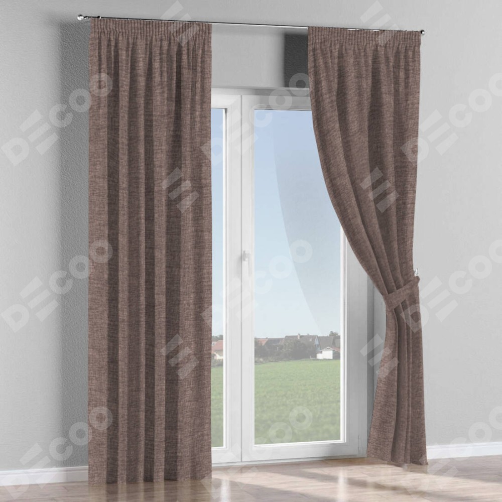 Комплект готовых штор «Cortin» рогожка димаут коричневый на тесьме «Карандаш» предоставлена в следующих характеристиках: