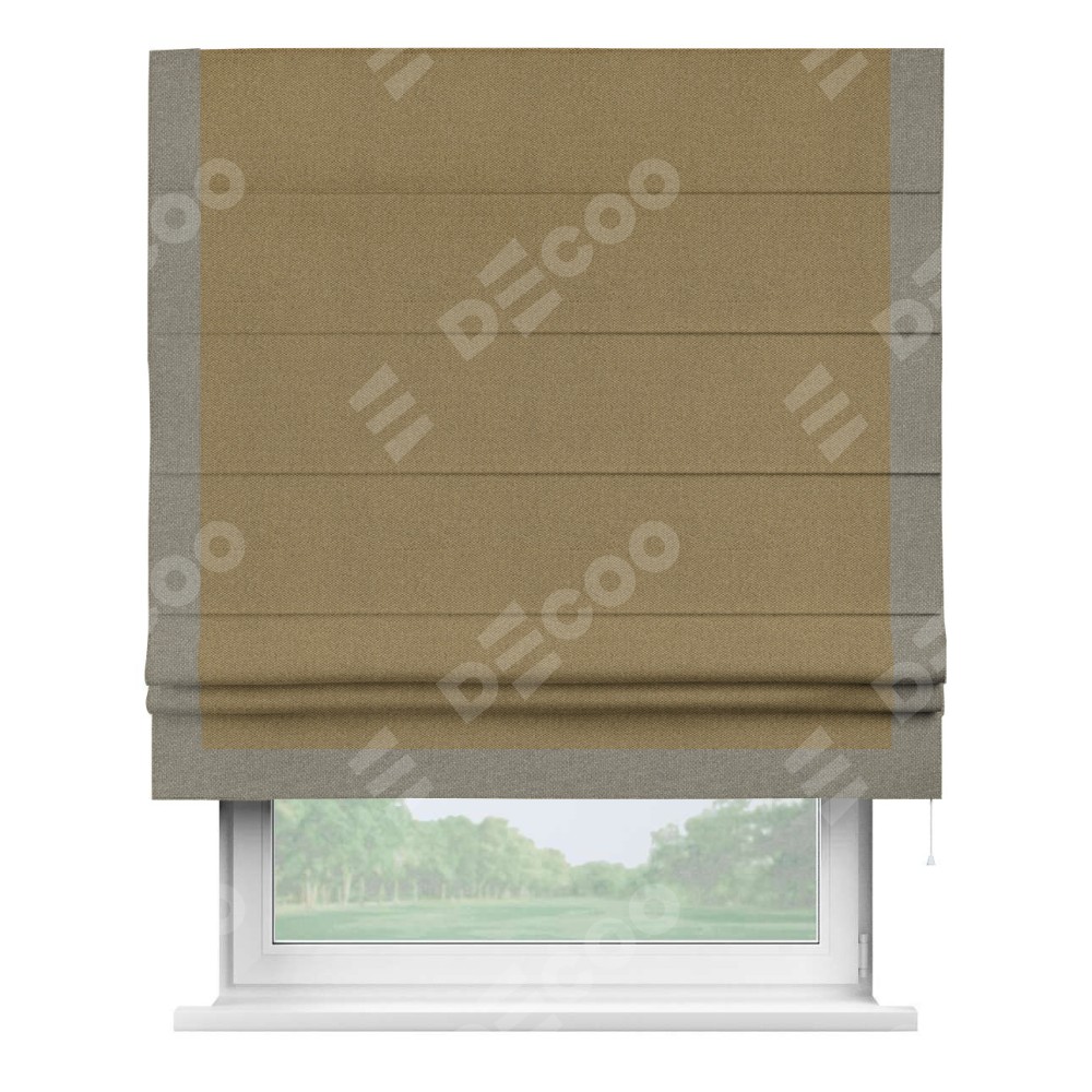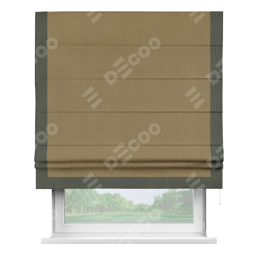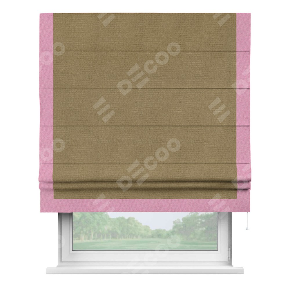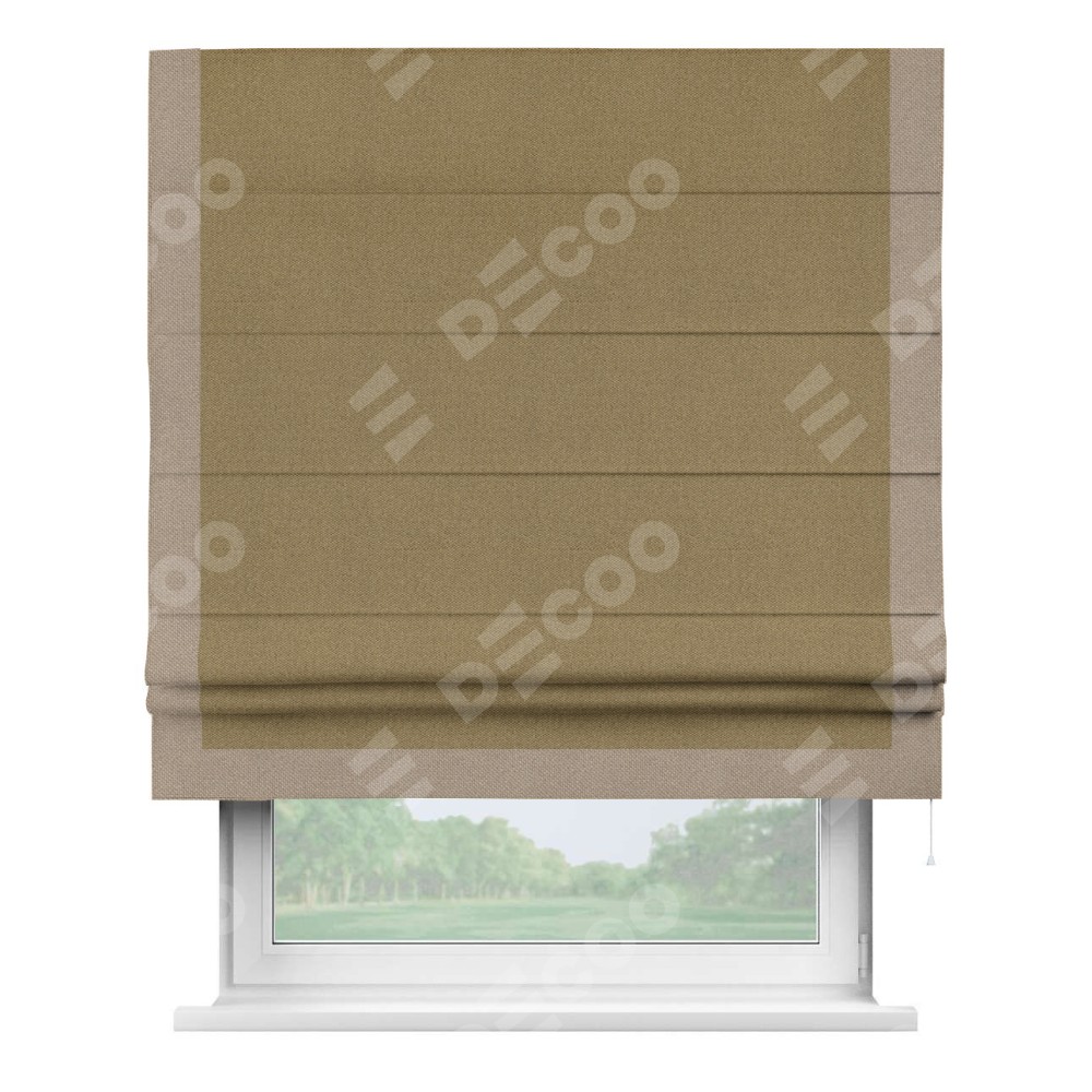 Римская штора «Кортин» с кантом Виктория, для проема, ткань лён димаут, оливковый