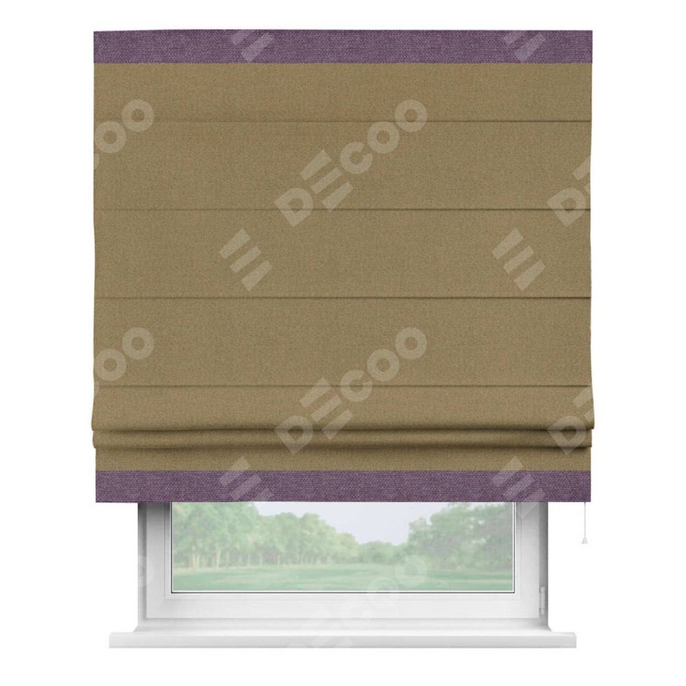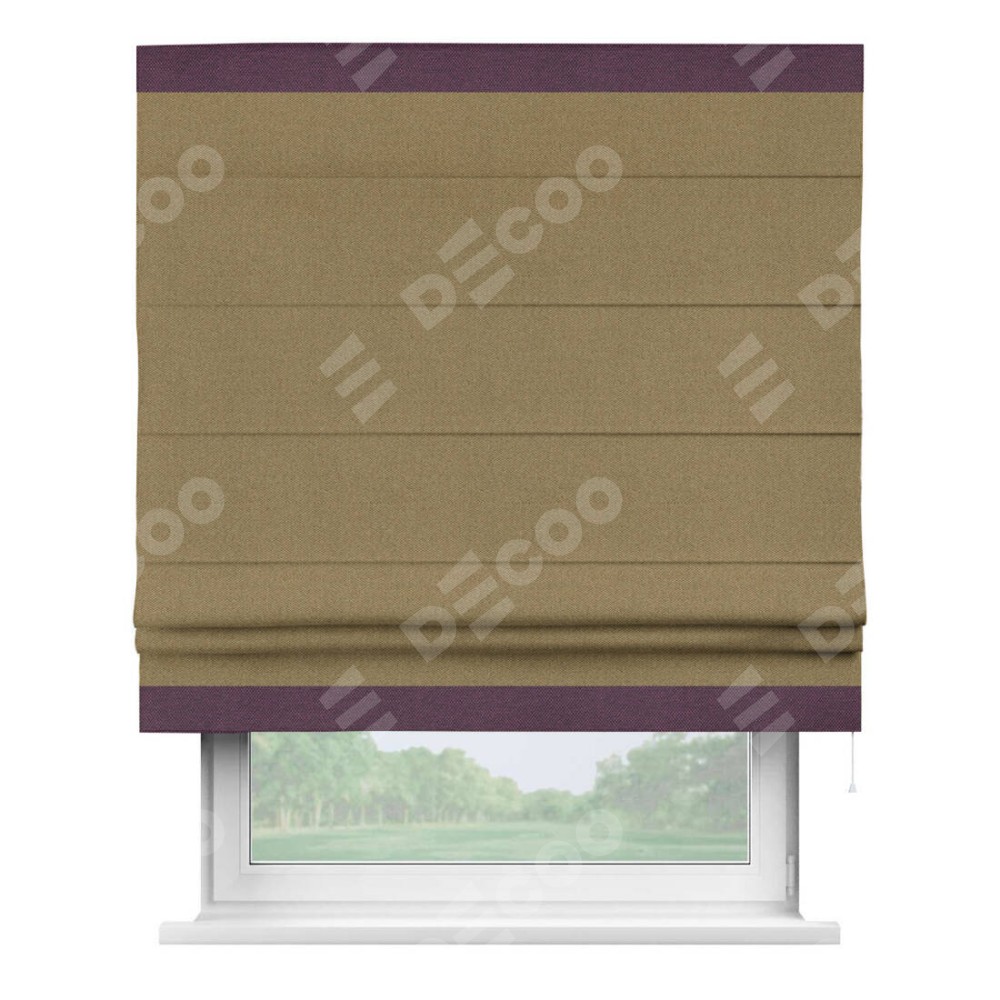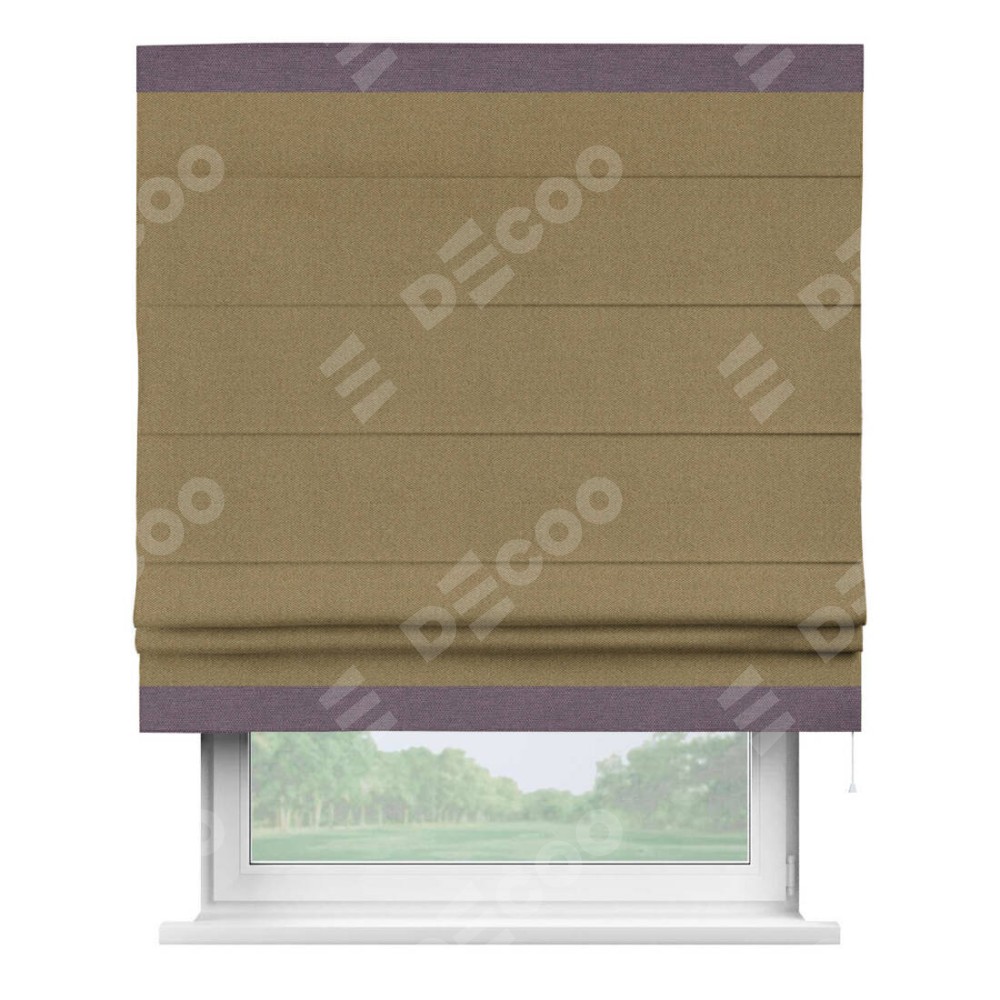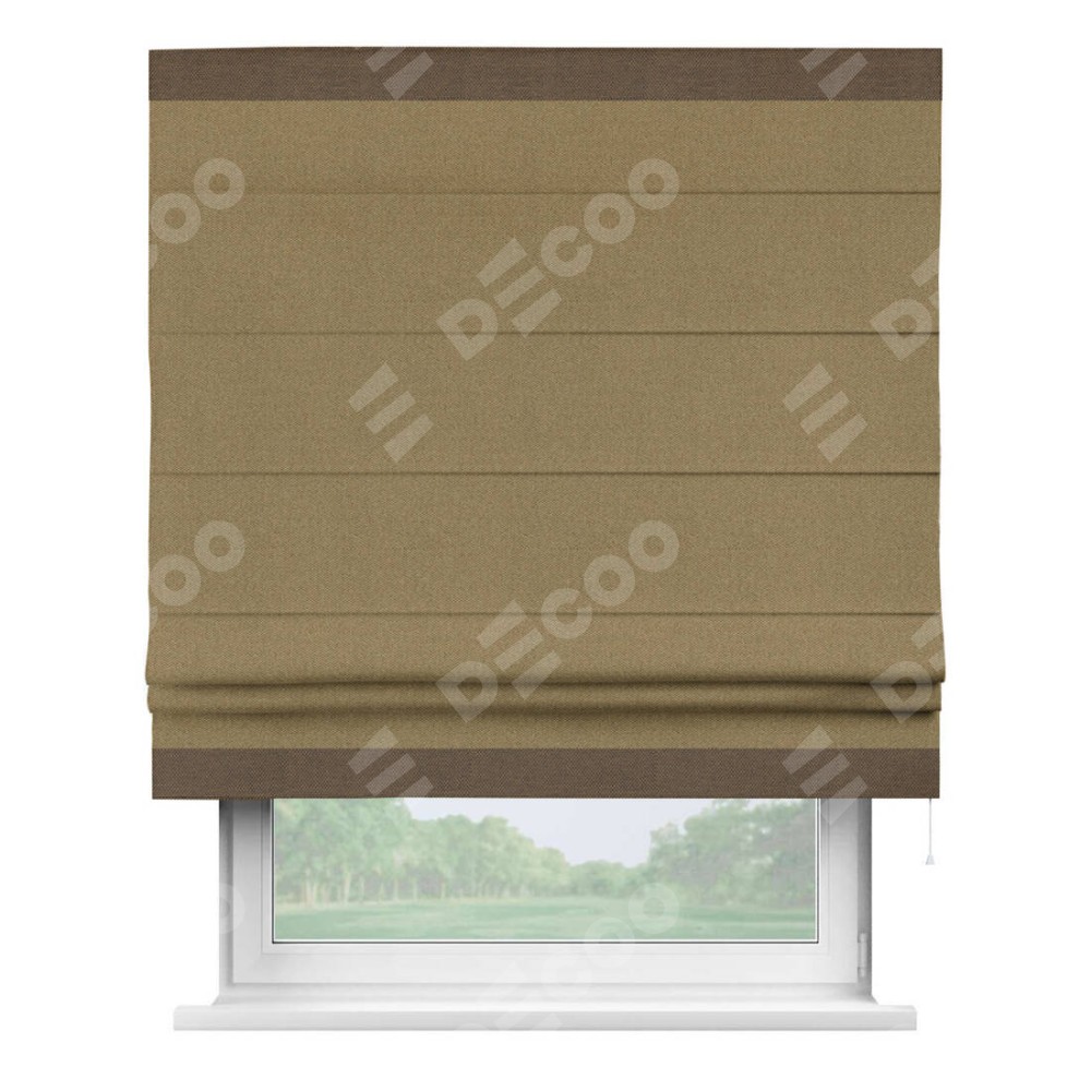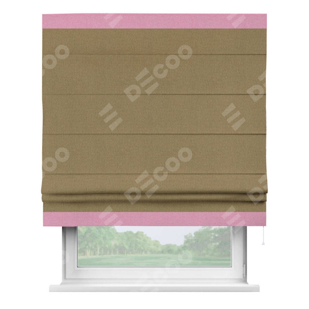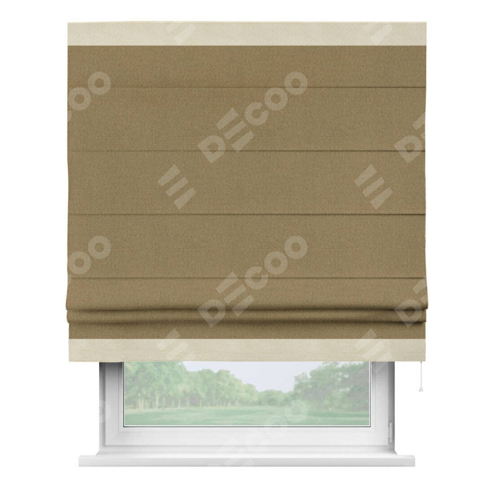 Римская штора «Кортин» с кантом Горизонт, для проема, ткань лён димаут, оливковый