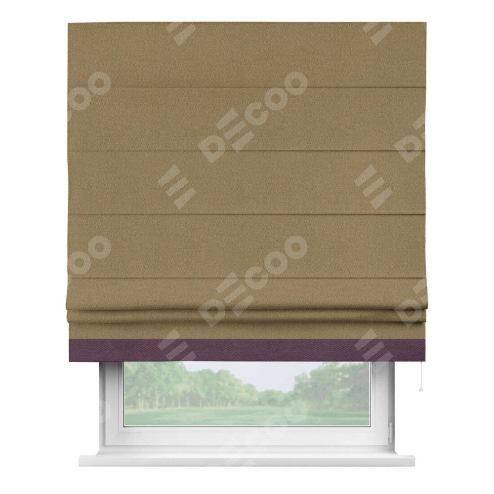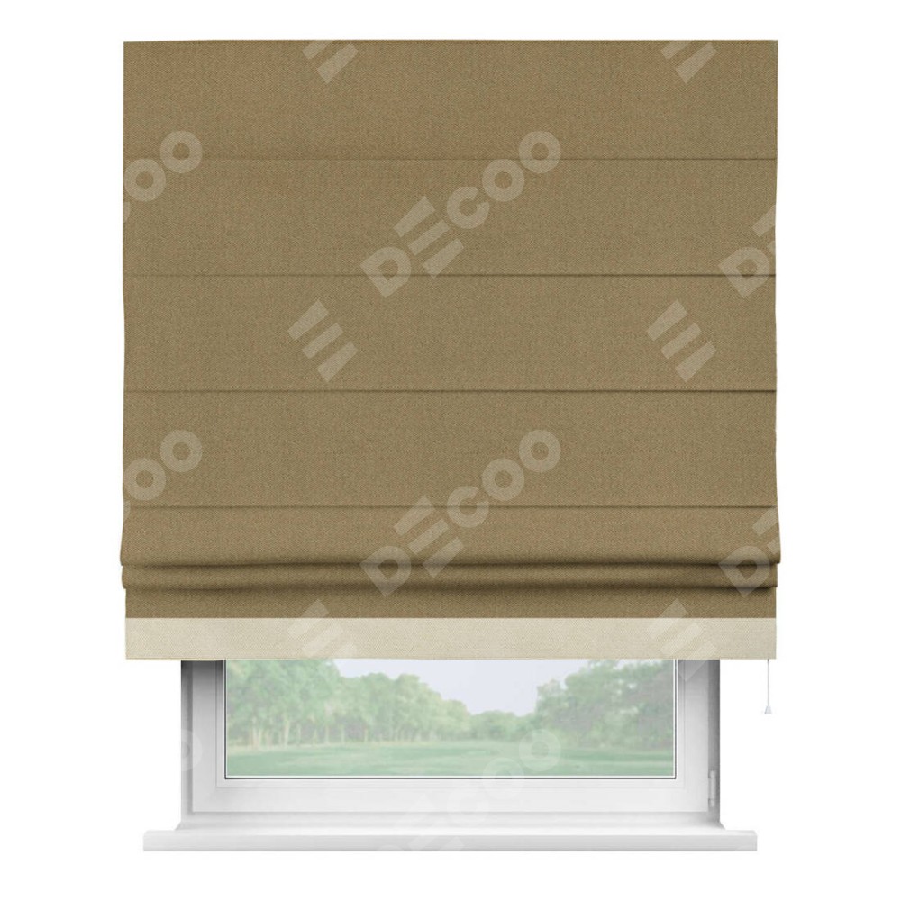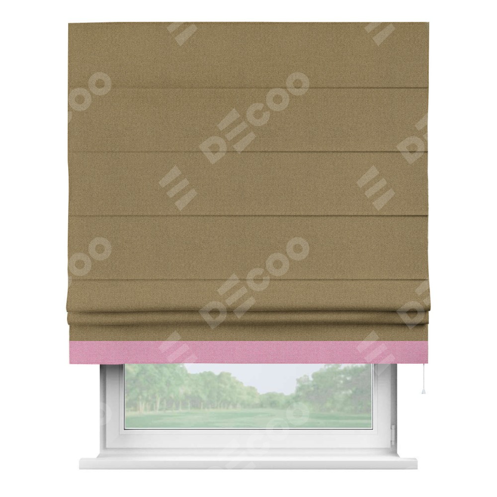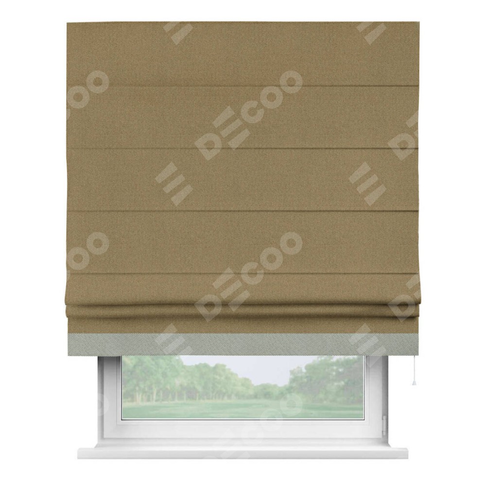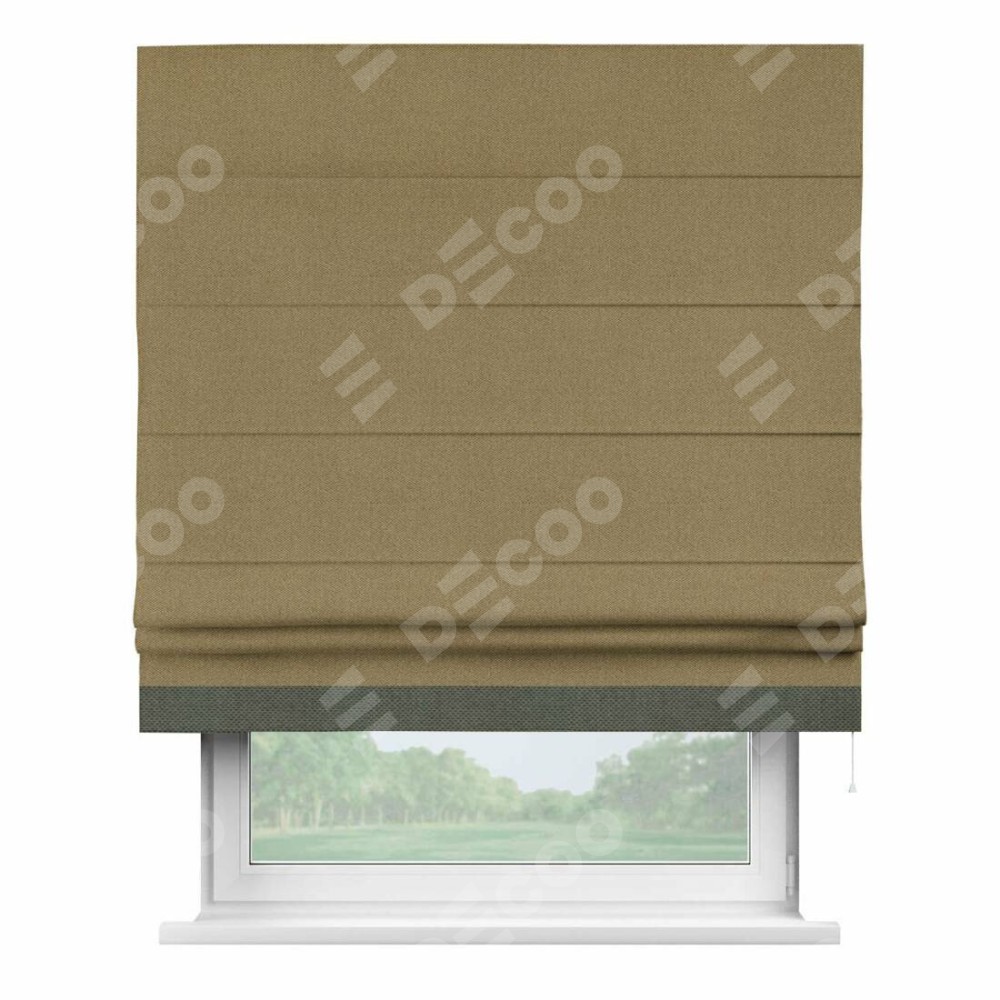 Римская штора «Кортин» с кантом Джестер, для проема, ткань лён димаут, оливковый