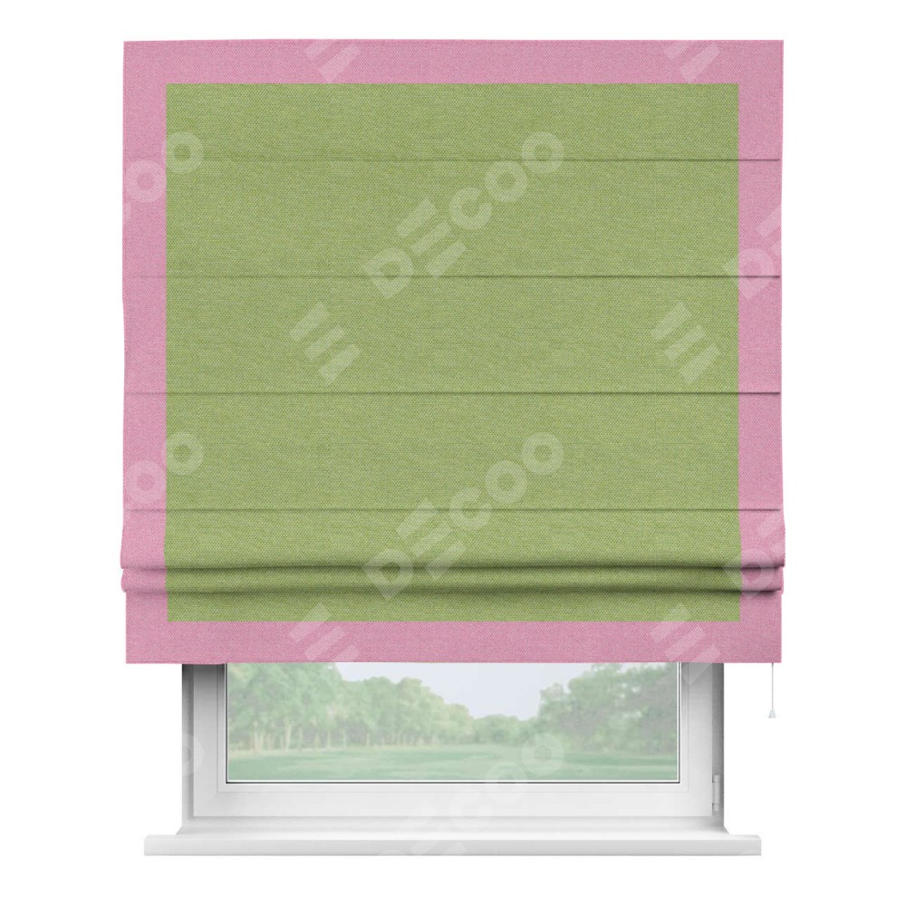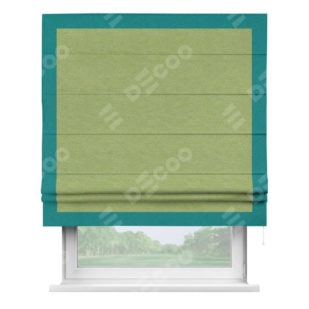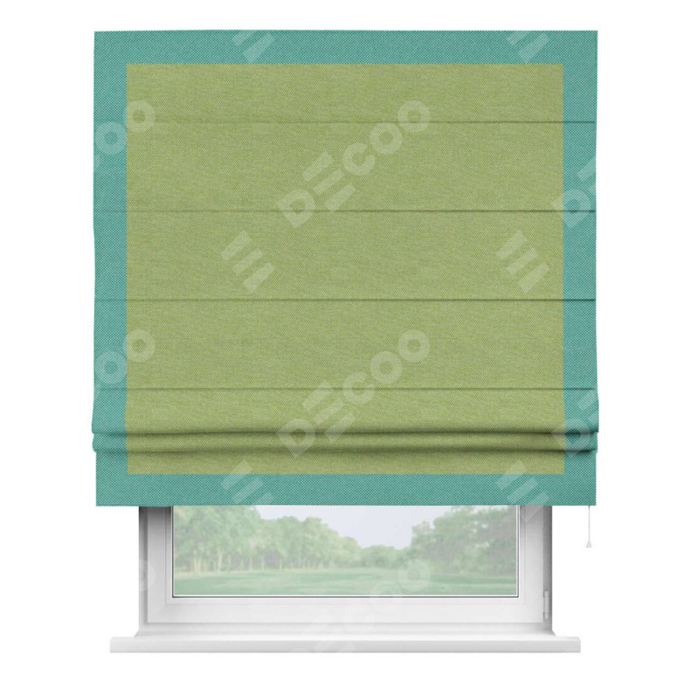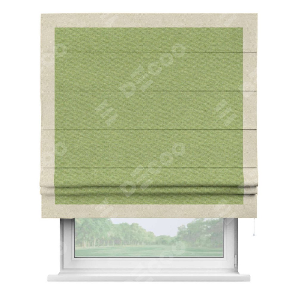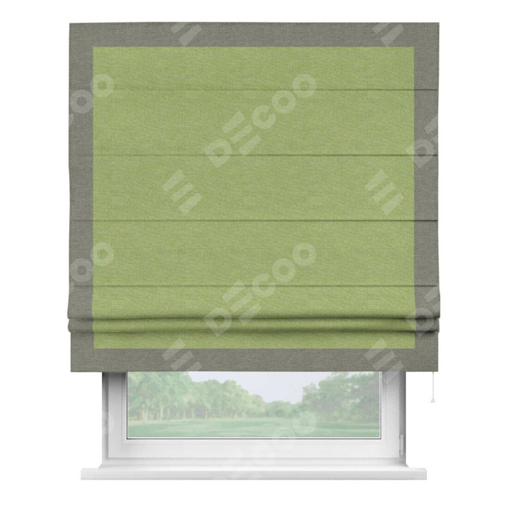 Римская штора «Кортин» с кантом Чесс, для проема, ткань лён димаут, салатовый