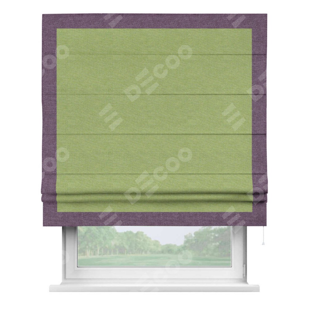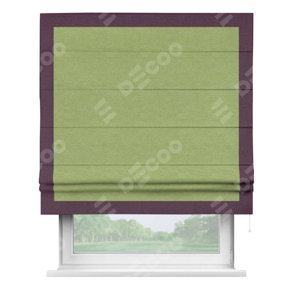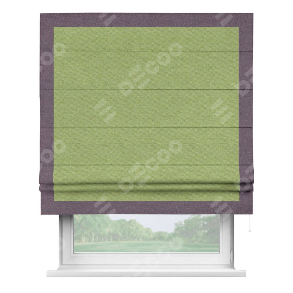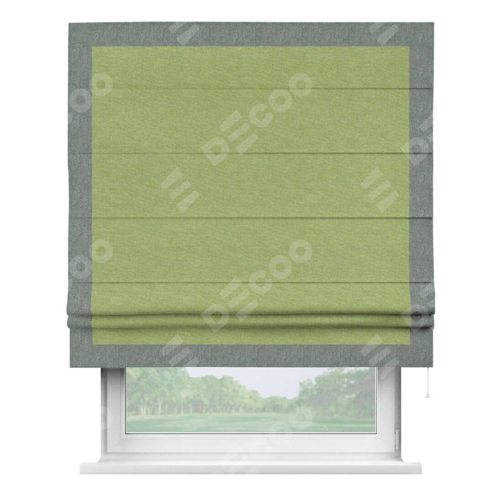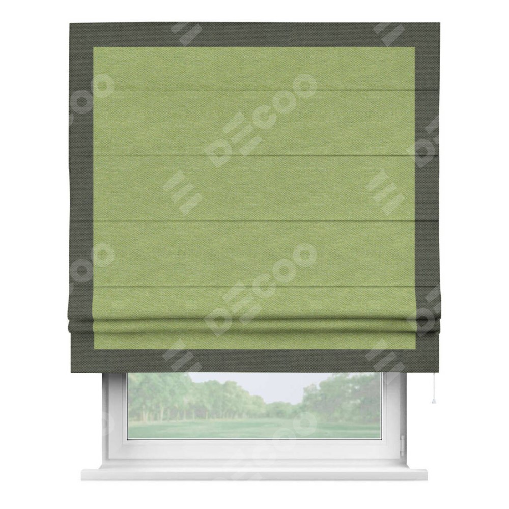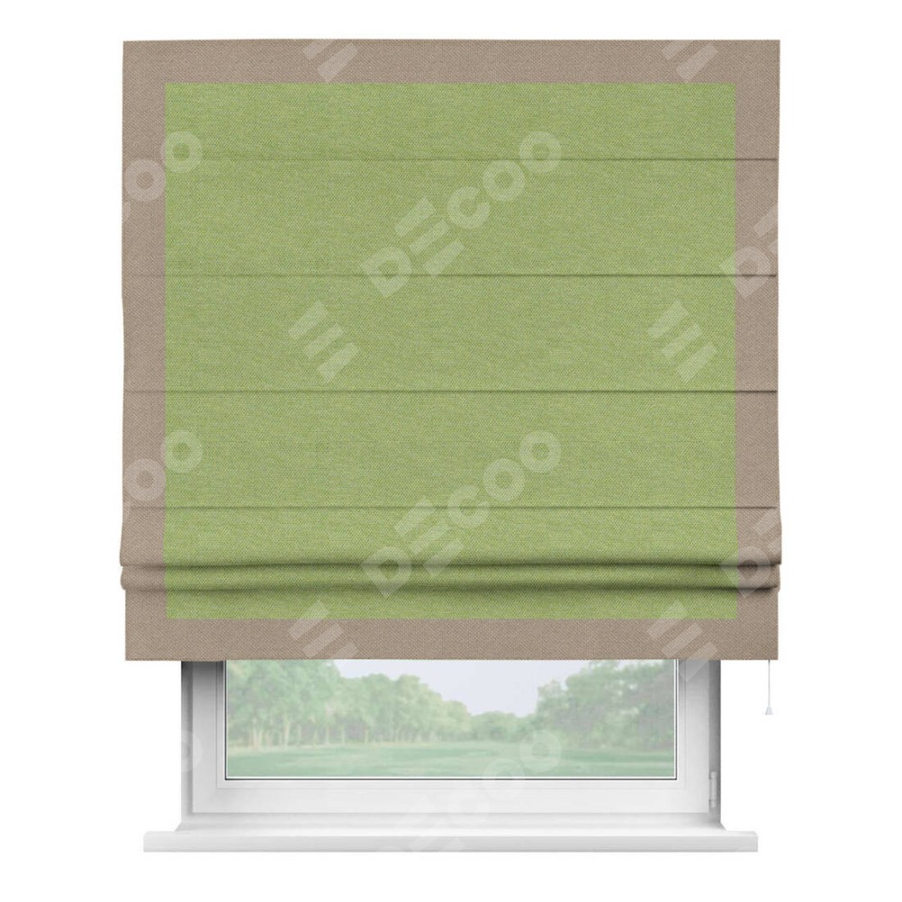 Римская штора «Кортин» с кантом Чесс, для проема, ткань лён димаут, салатовый