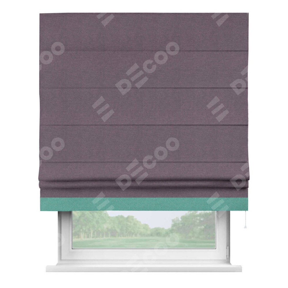 Римская штора производителя «Cortin», используется для проёма, пошита из ткани лён димаут светло-фиолетовый, артикул 83034. Отделка шторы кантом «Джестер», ткань для канта используется из льна димаут разной расцветки на выбор. Имеет универсальный механизм и подходит для монтажа: на потолок, на стену и в нишу.