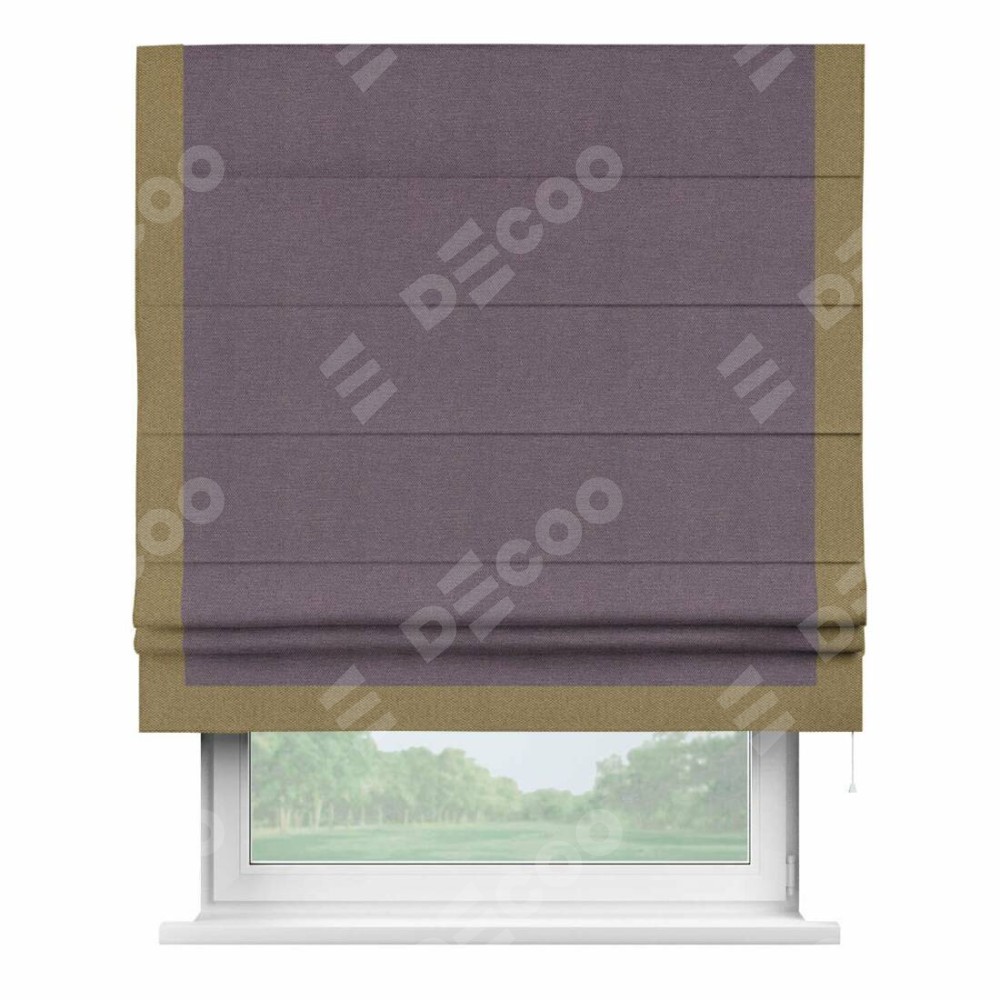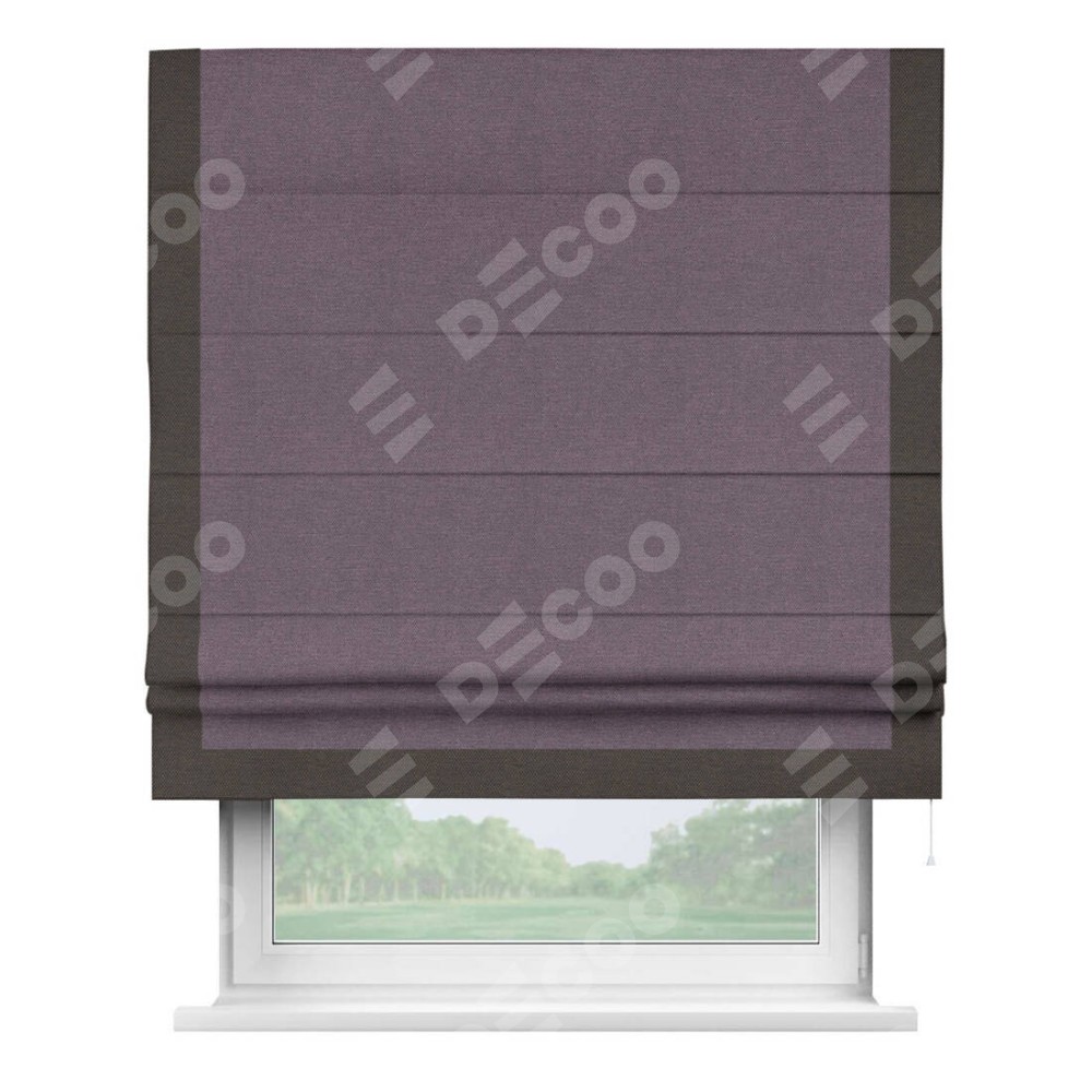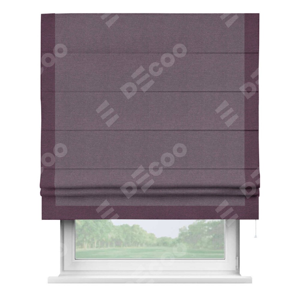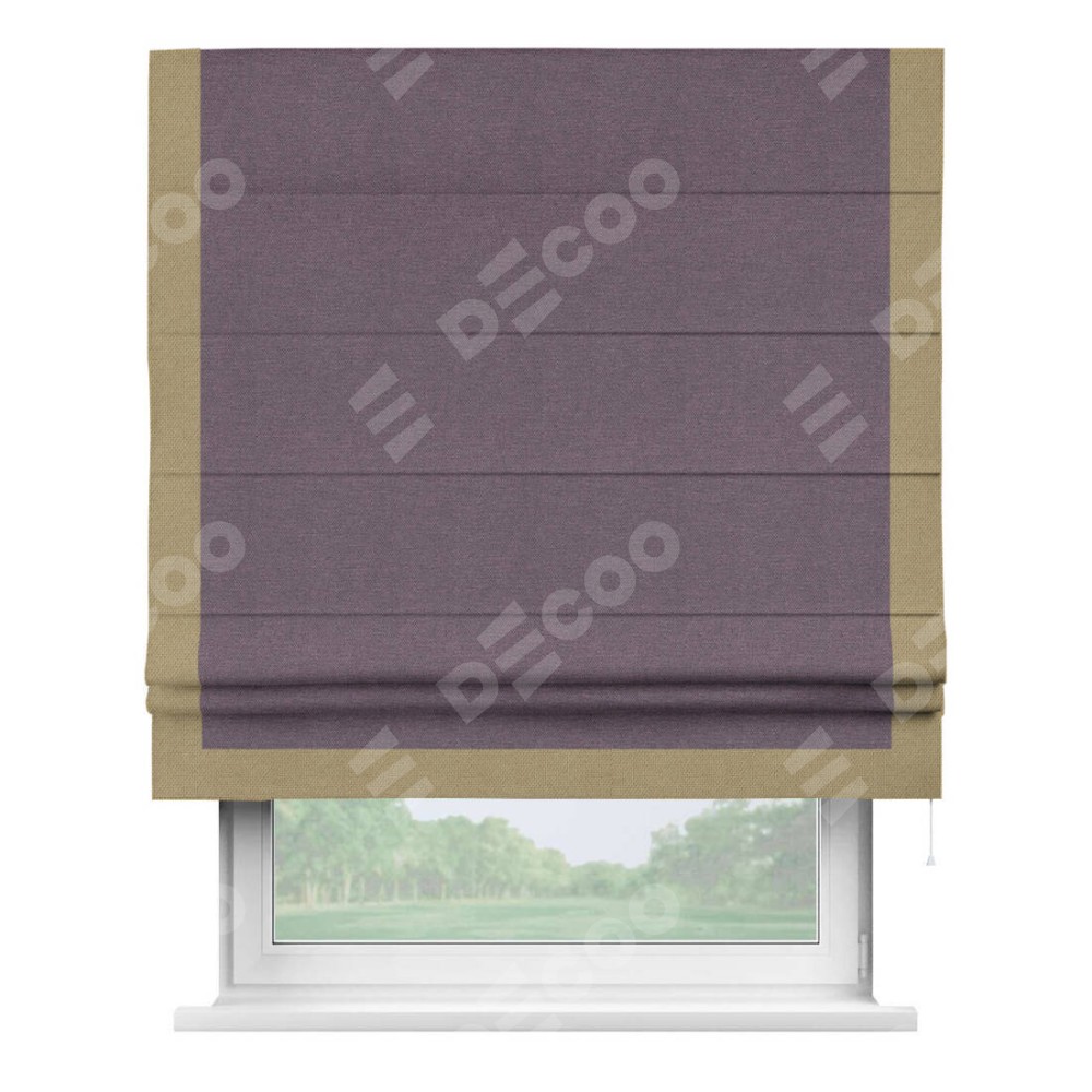 Римская штора «Кортин» с кантом Виктория, для проема, ткань лён димаут, светло-фиолетовый