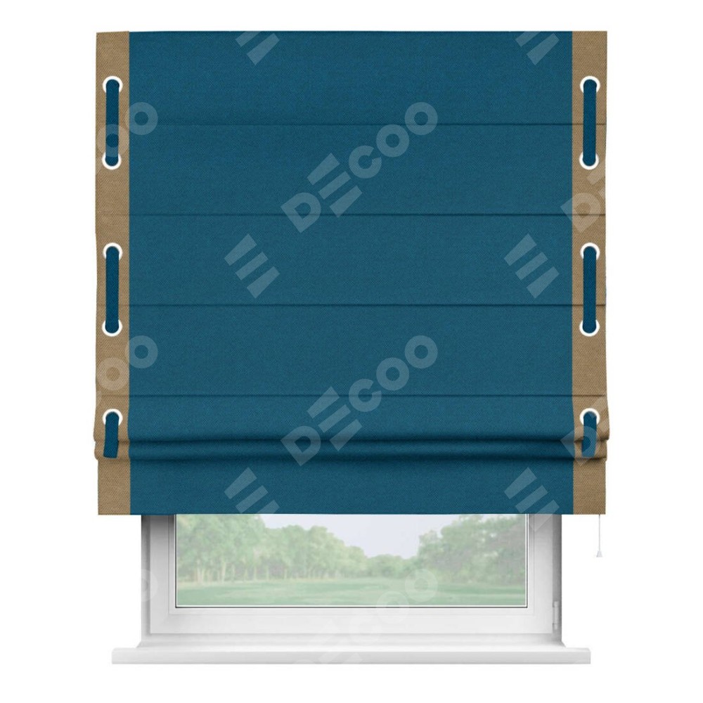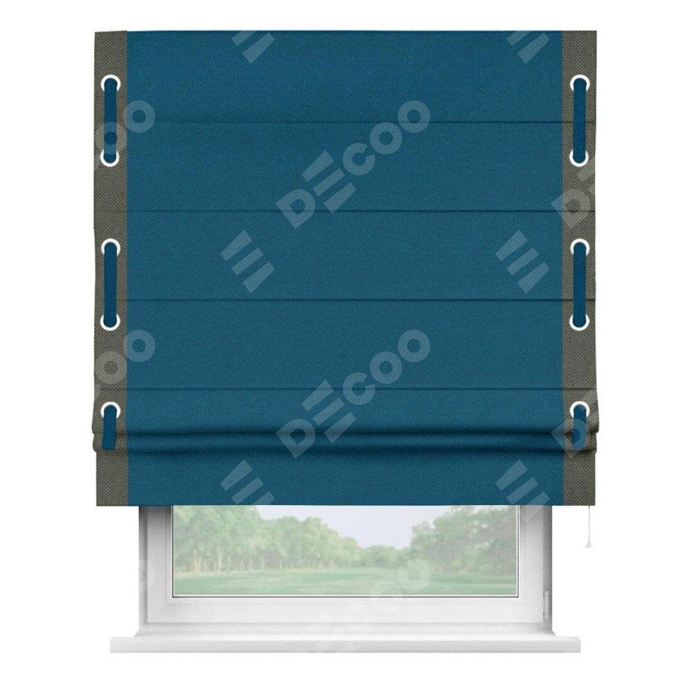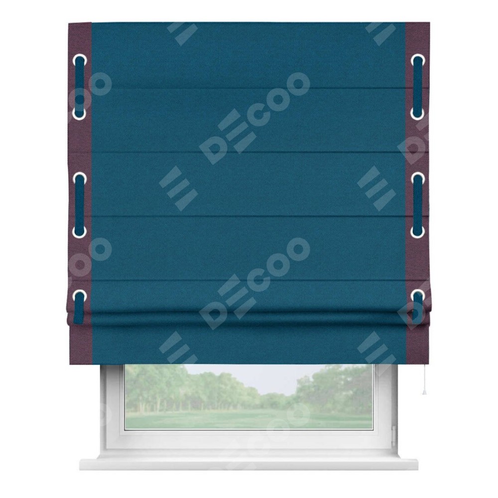 Римская штора «Кортин» с кантом Стрим Дуо (люверсы с пояском), для проема, ткань лён димаут, синий