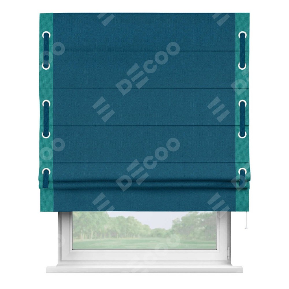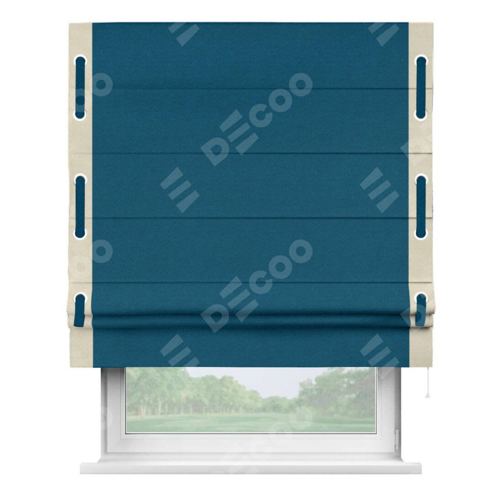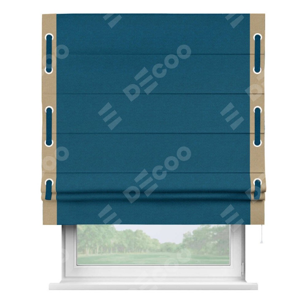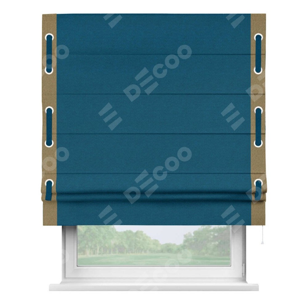 Римская штора «Кортин» с кантом Стрим Дуо (люверсы с пояском), для проема, ткань лён димаут, синий