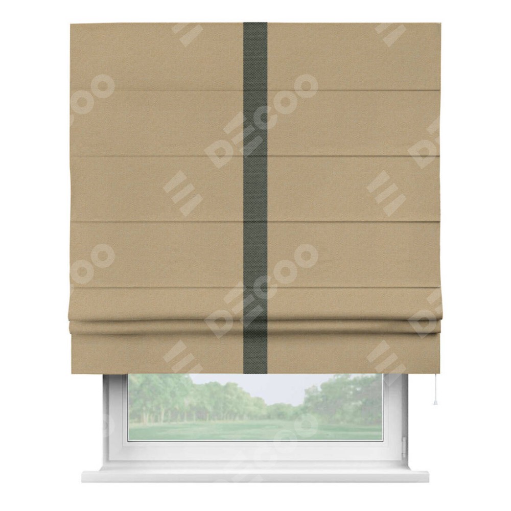 Римская штора «Кортин» с кантом Хайвэй, для проема, ткань лён димаут, тёмно-бежевый