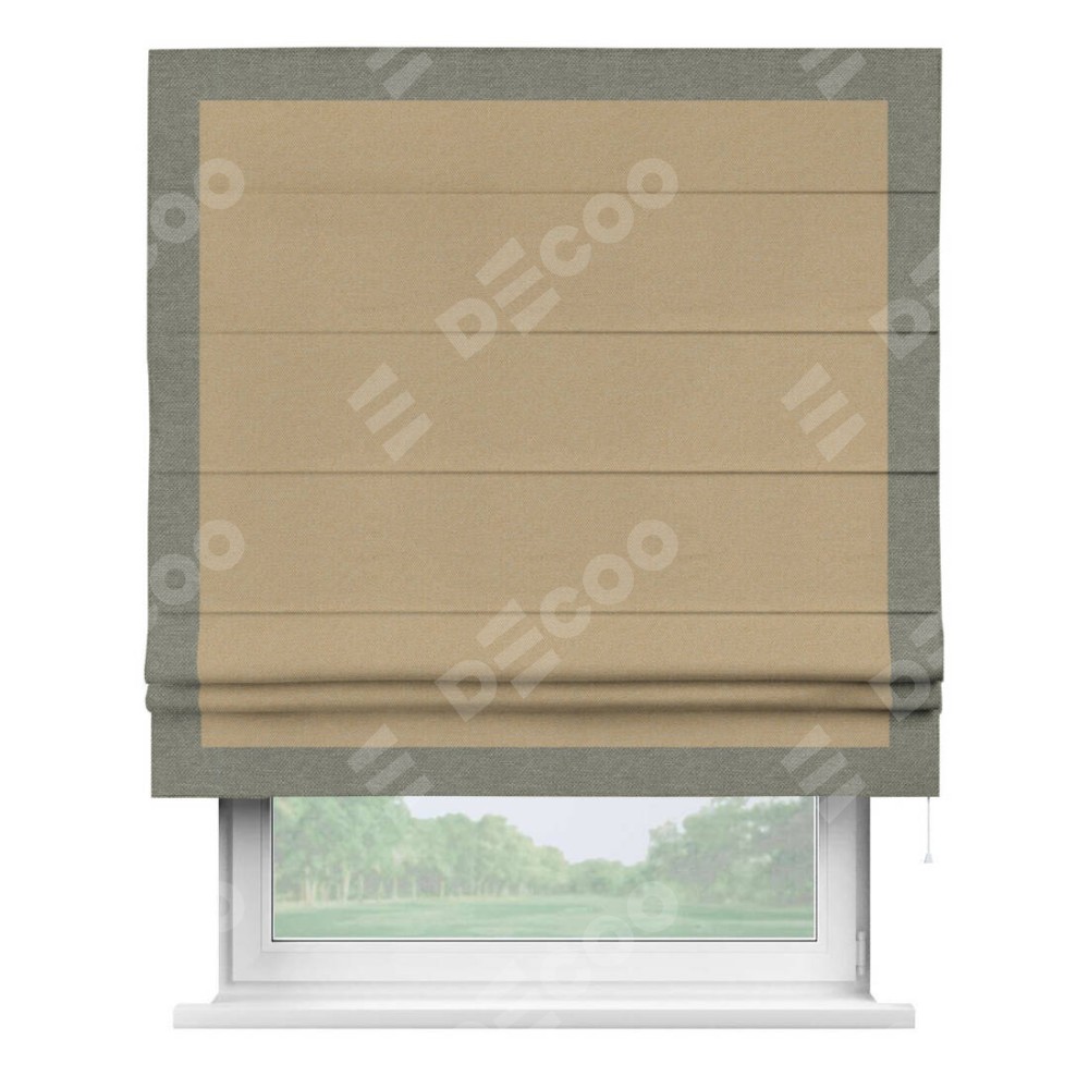 Римская штора «Кортин» с кантом Чесс, для проема, ткань лён димаут, тёмно-бежевый