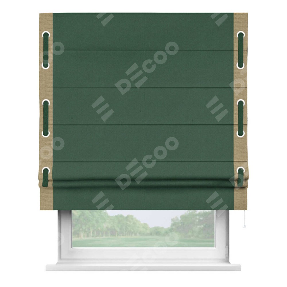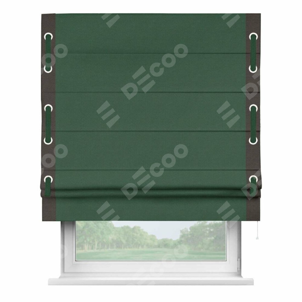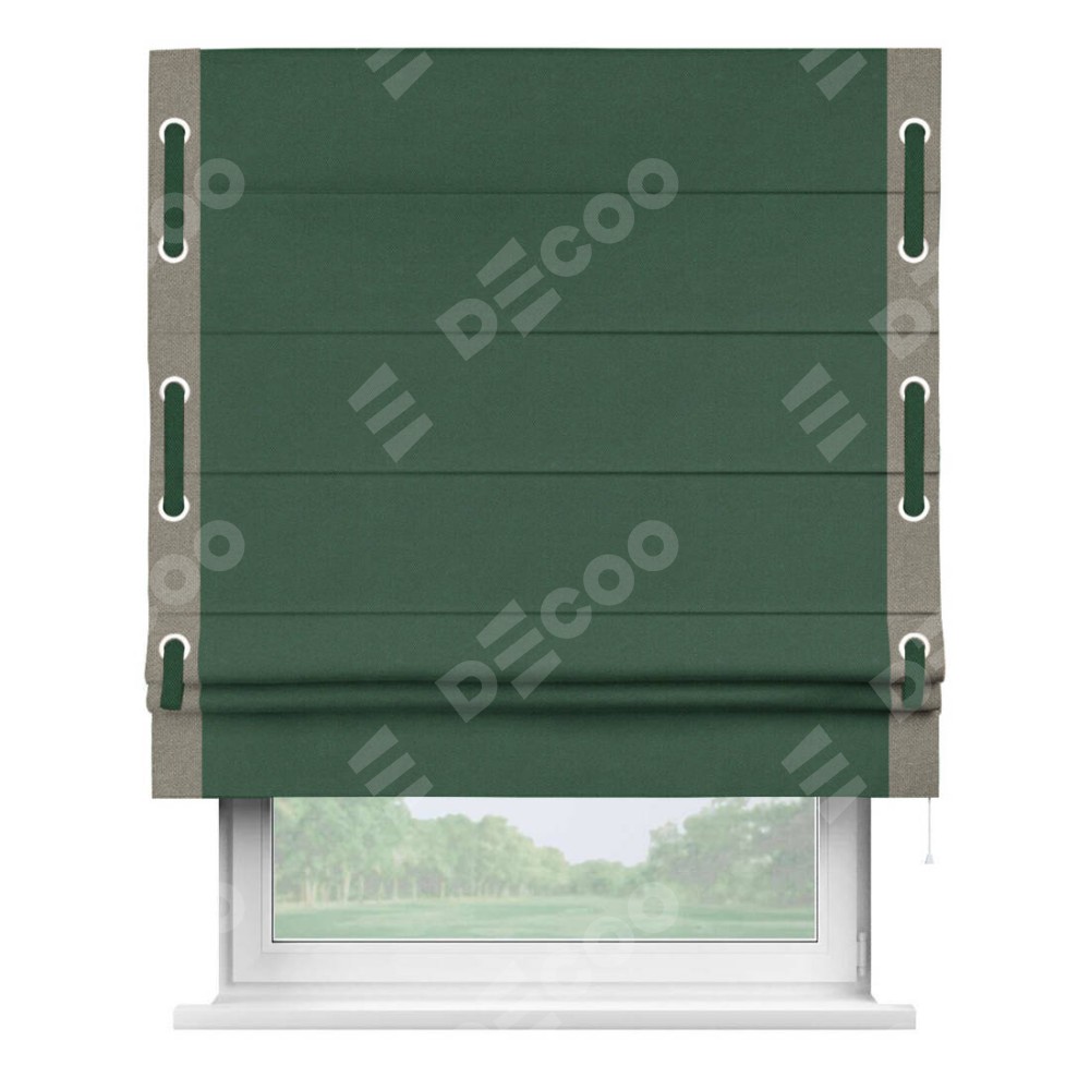 Римская штора «Кортин» с кантом Стрим Дуо (люверсы с пояском), для проема, ткань лён димаут, тёмно-зелёный