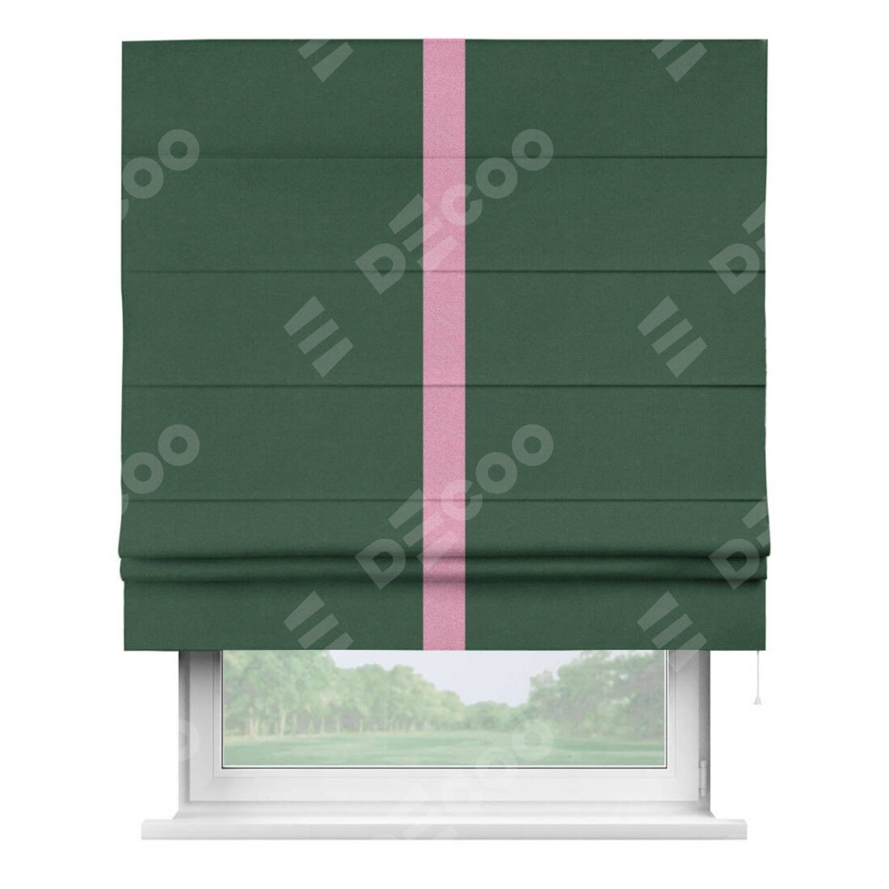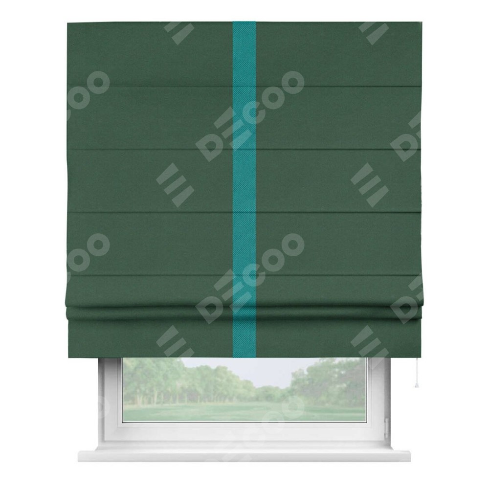 Римская штора «Кортин» с кантом Хайвэй, для проема, ткань лён димаут, тёмно-зелёный
