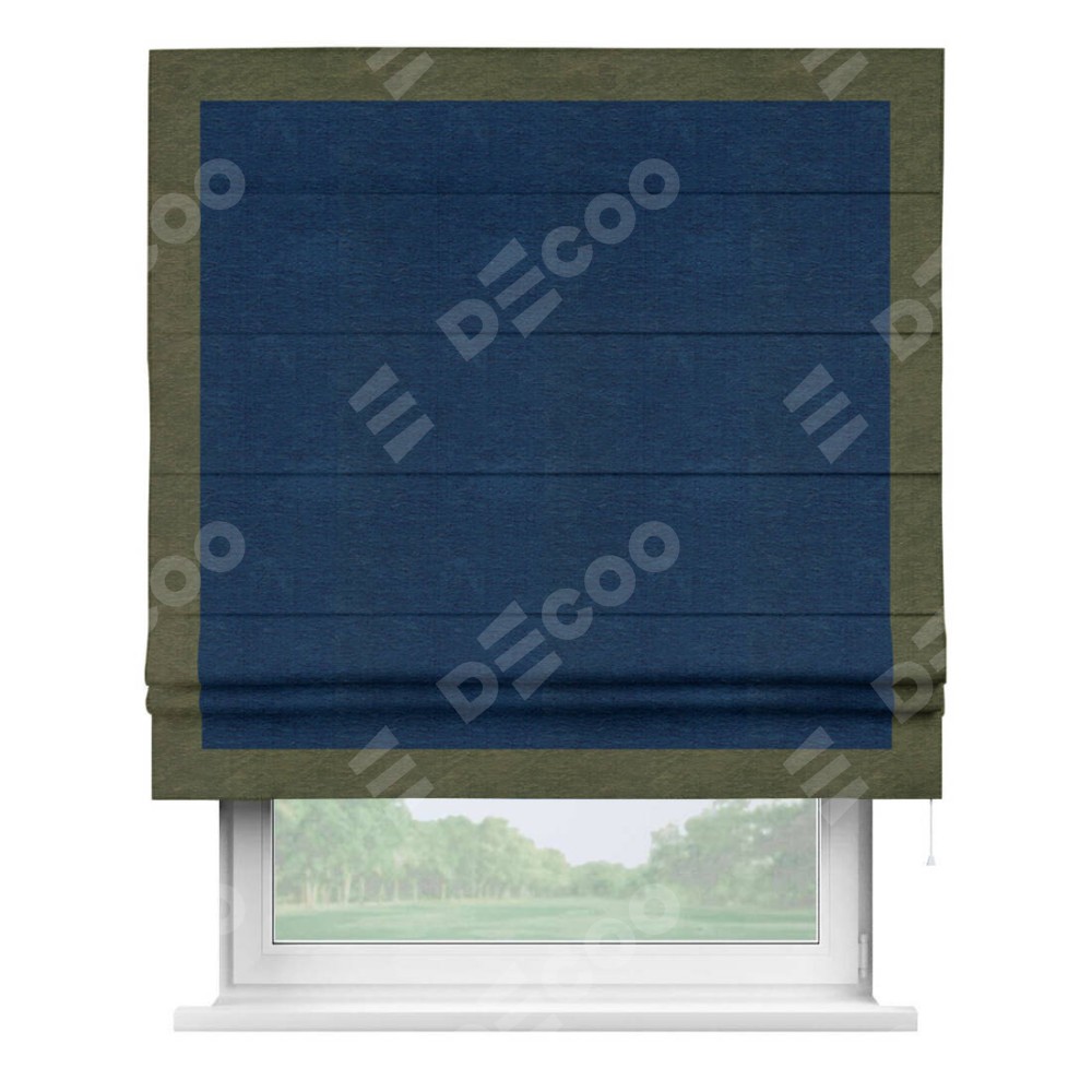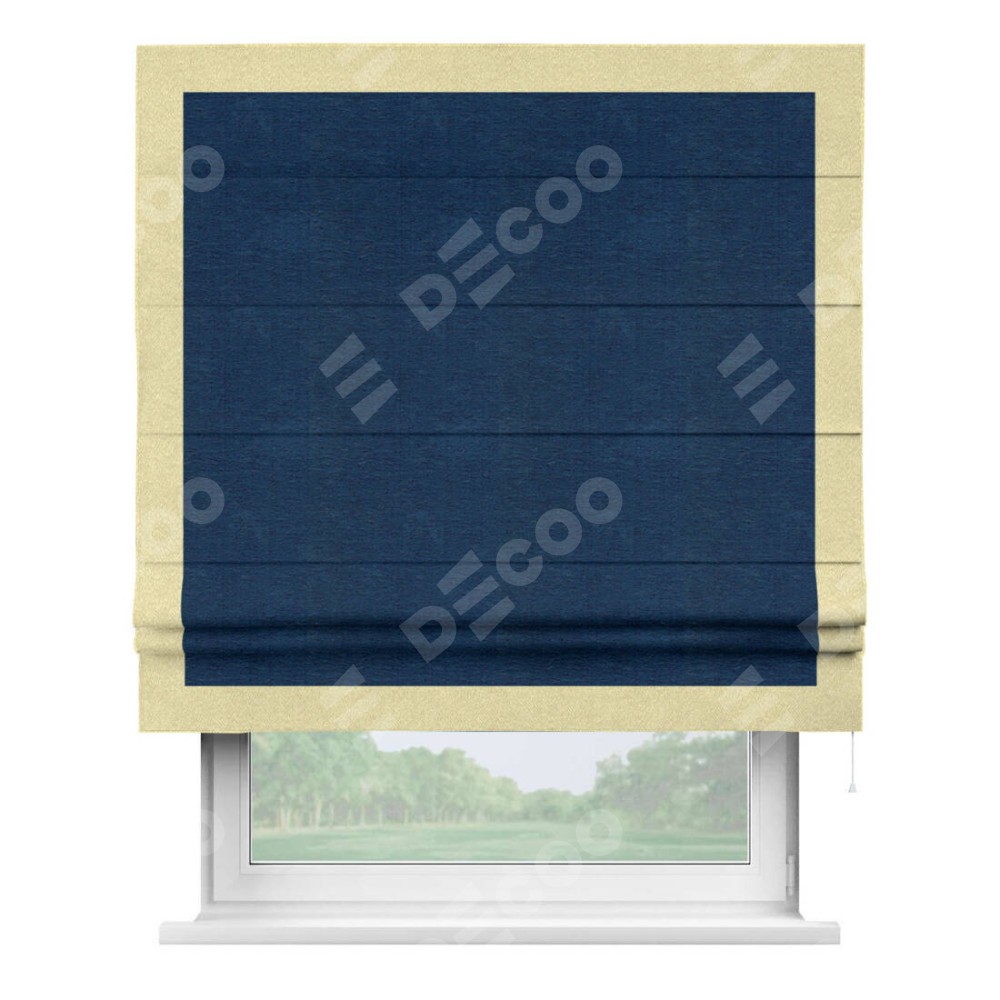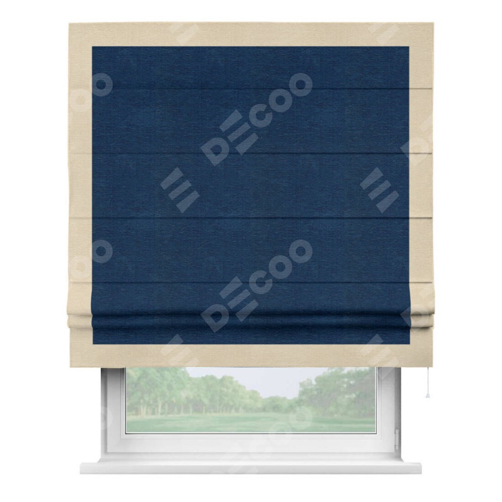 Римская штора «Кортин» с кантом Чесс, для проема, ткань софт однотонный синий