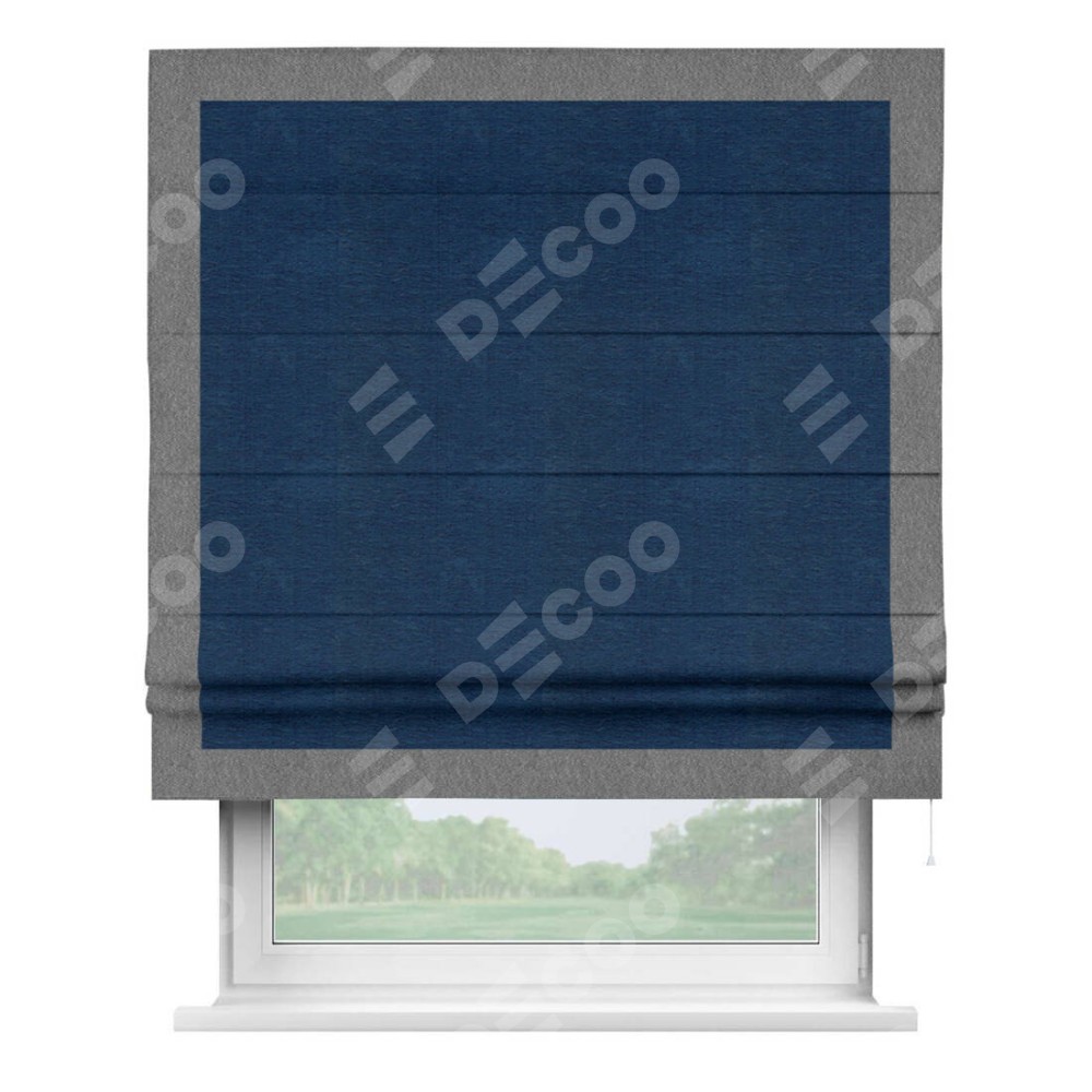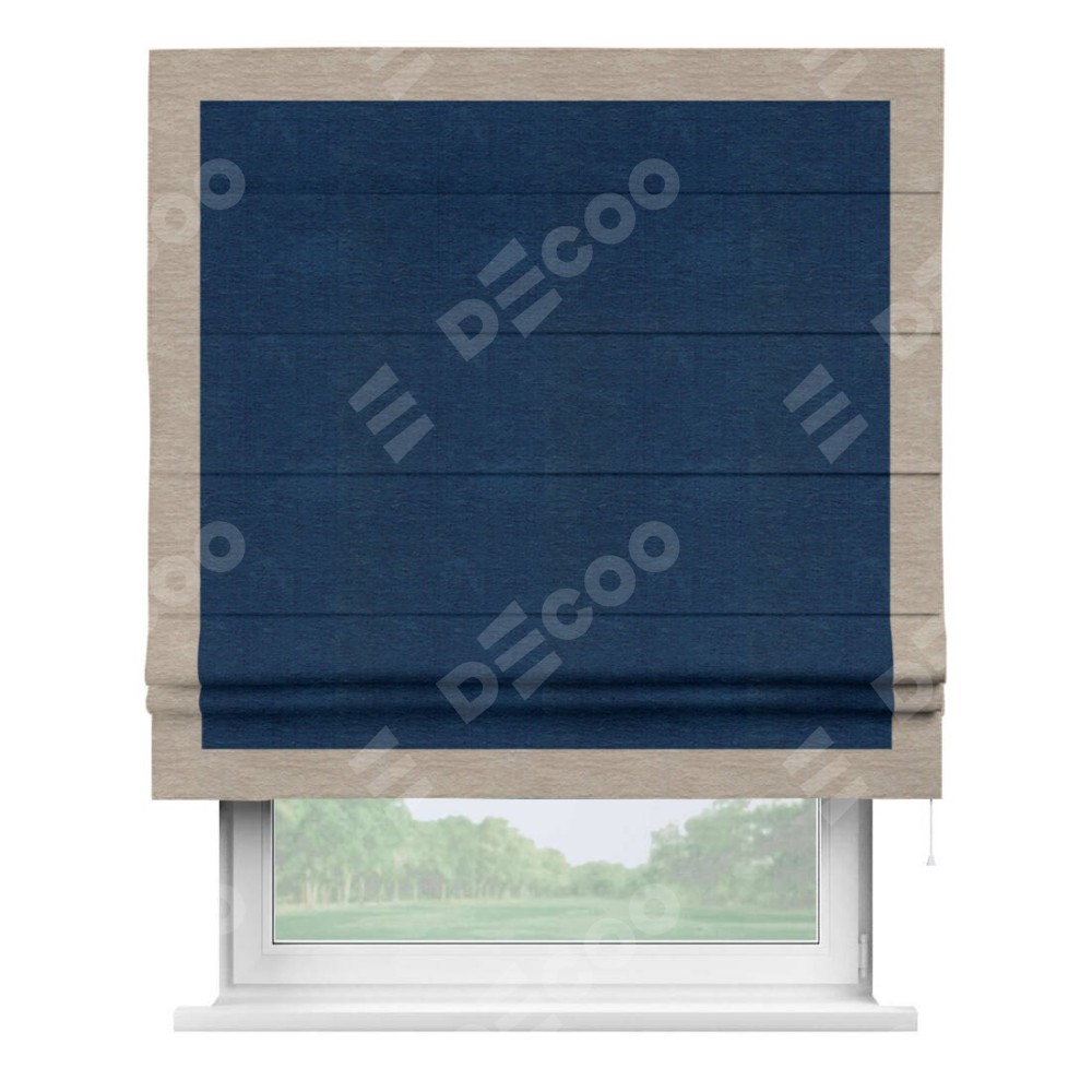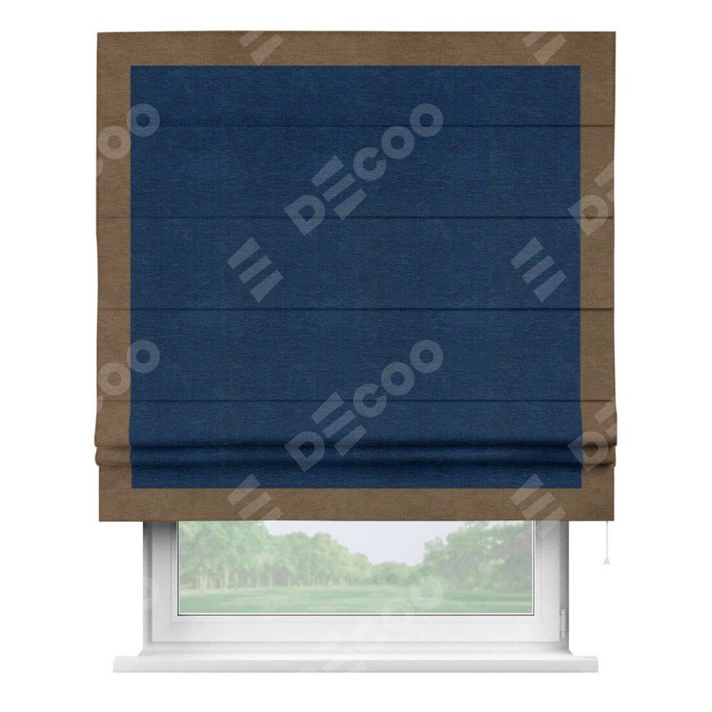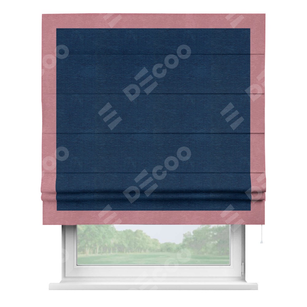 Римская штора «Кортин» с кантом Чесс, для проема, ткань софт однотонный синий