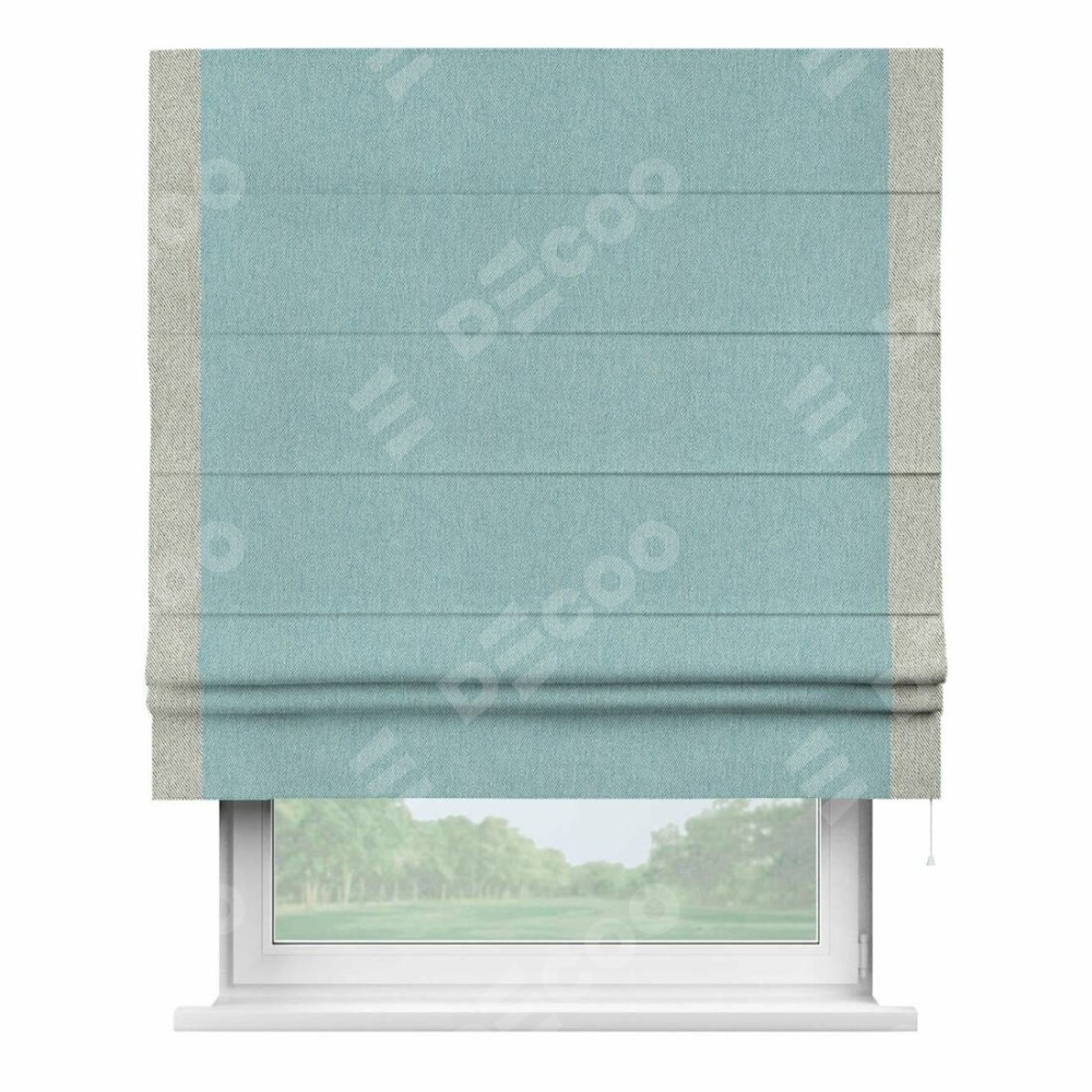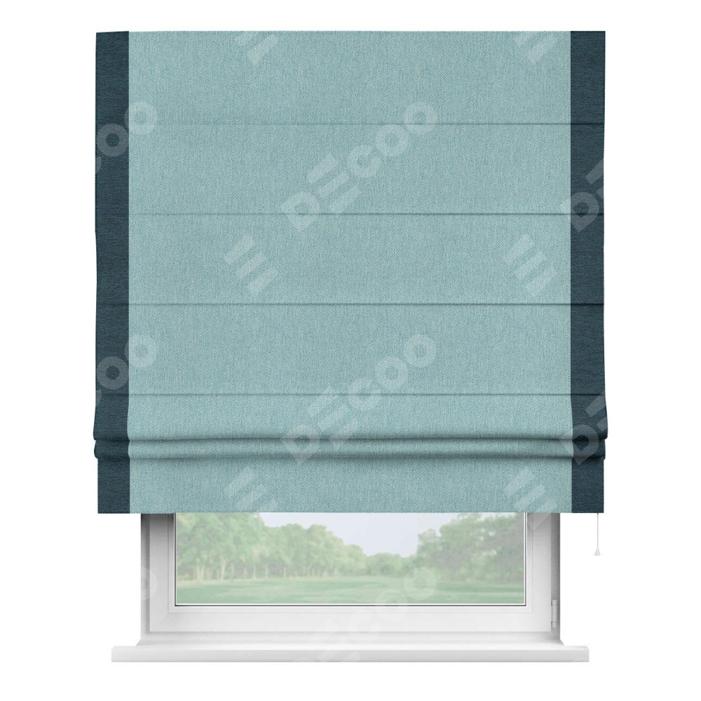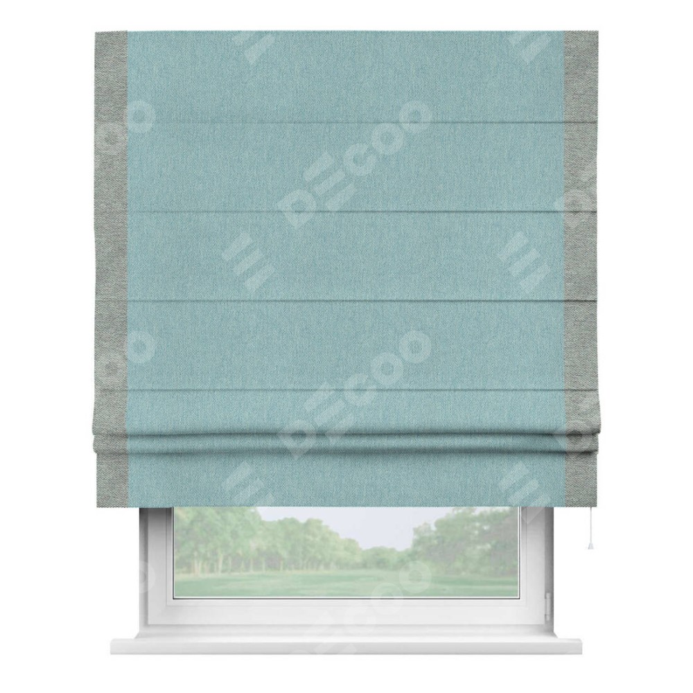 Римская штора «Кортин» с кантом Стрим Дуо, для проема, ткань твид блэкаут, небесно-голубой