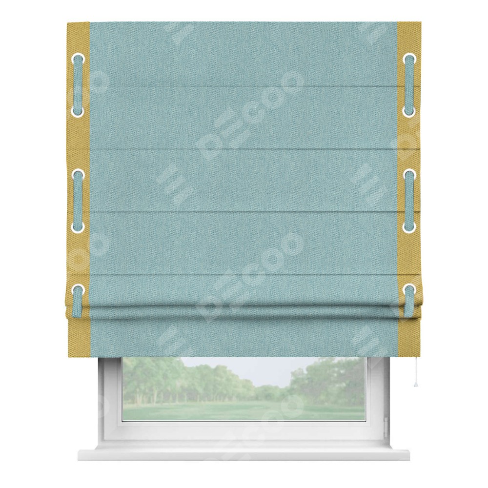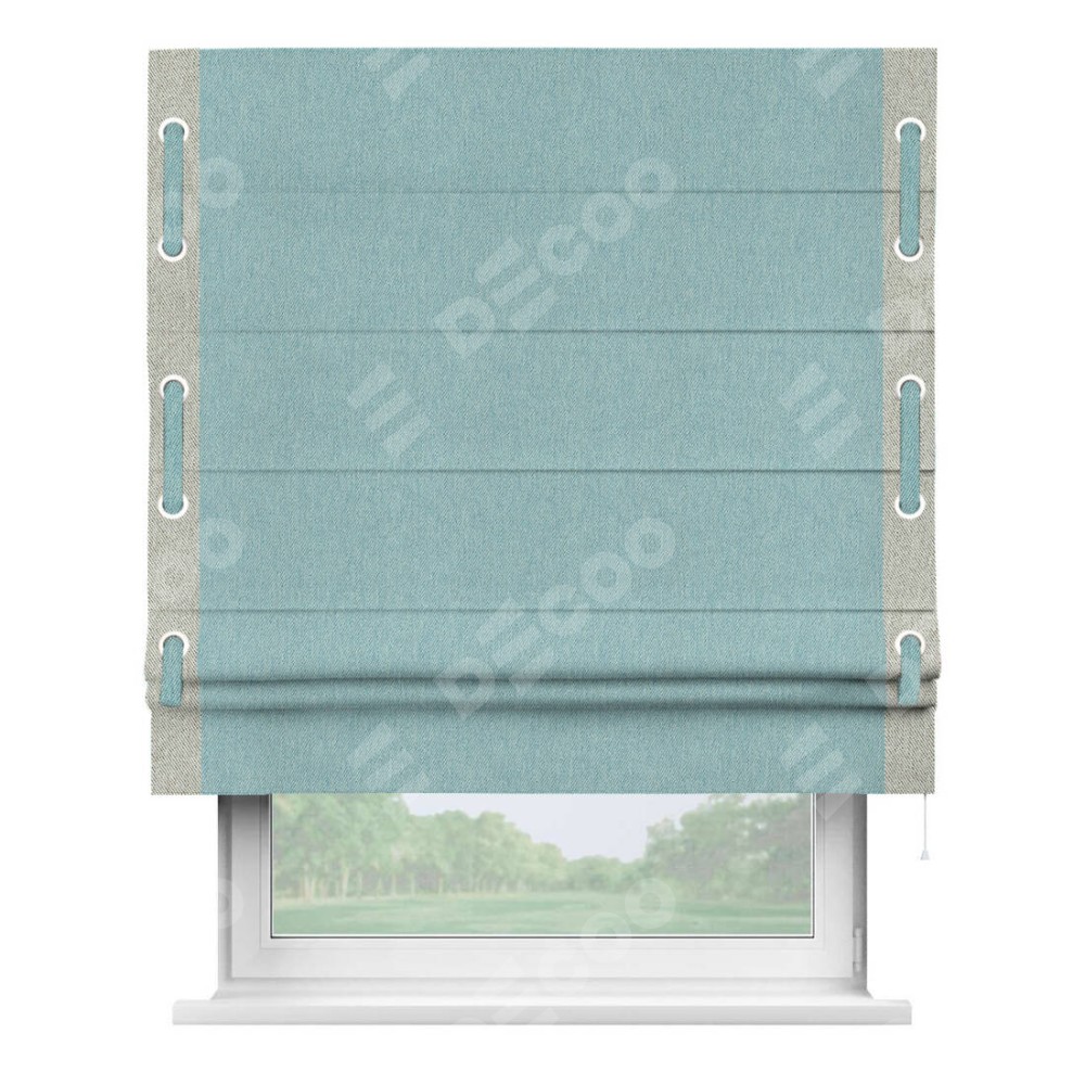 Римская штора «Кортин» с кантом Стрим Дуо (люверсы с пояском), для проема, ткань твид блэкаут, небесно-голубой