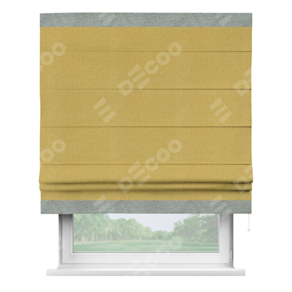 Римская штора «Кортин» с кантом Горизонт, для проема, ткань твид блэкаут, пыльная горчица