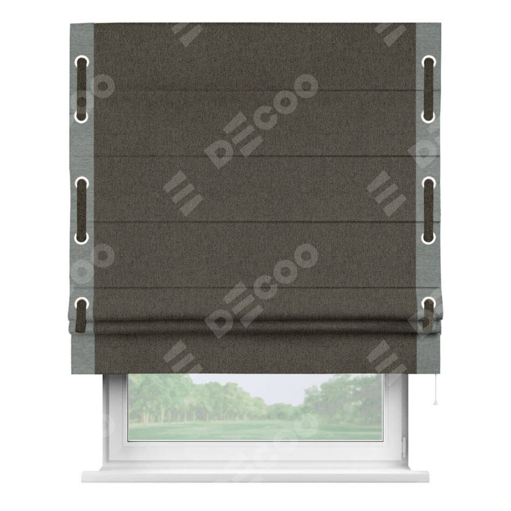 Римская штора «Кортин» с кантом Стрим Дуо (люверсы с пояском), для проема, ткань твид блэкаут, тёмно-коричневый