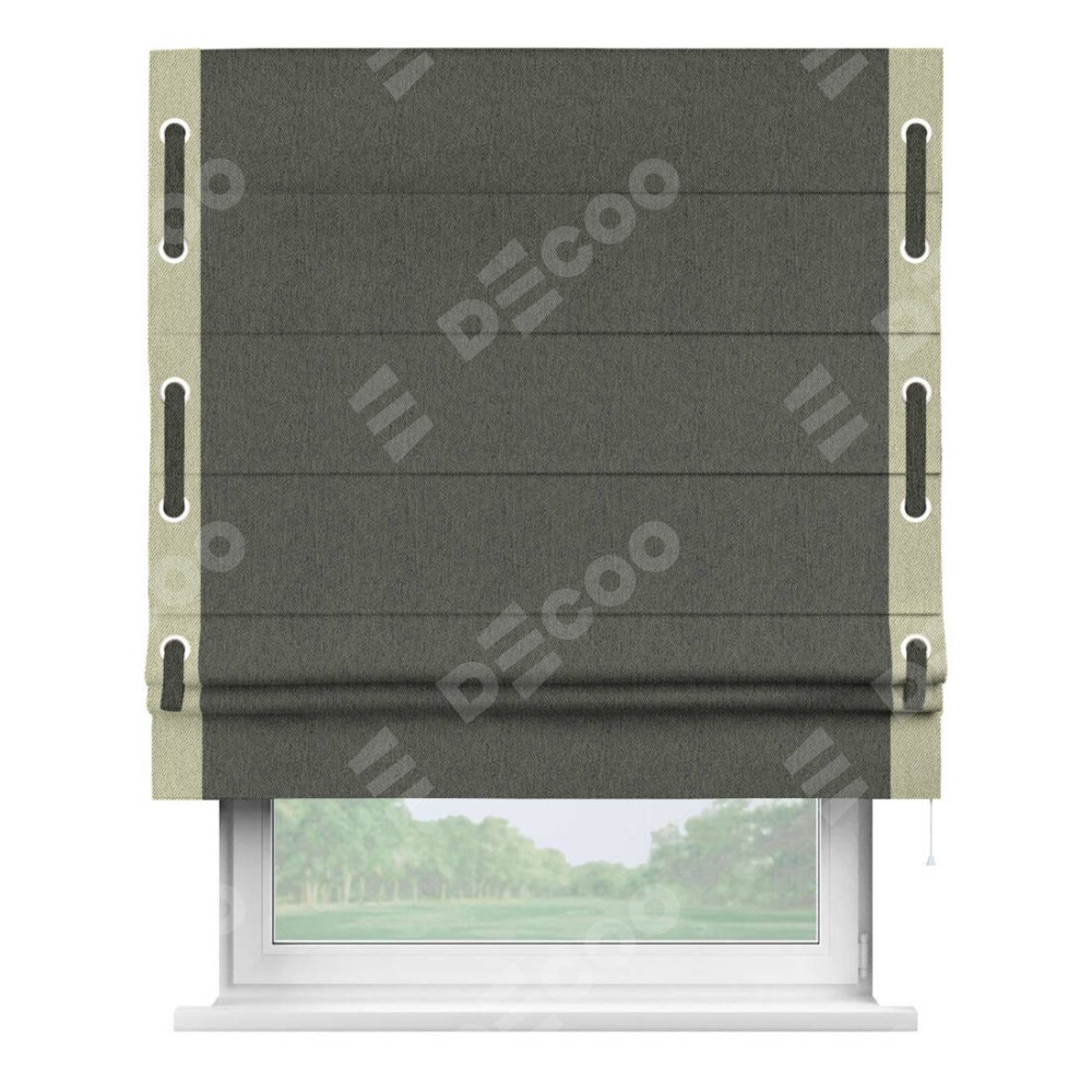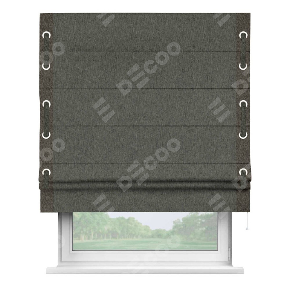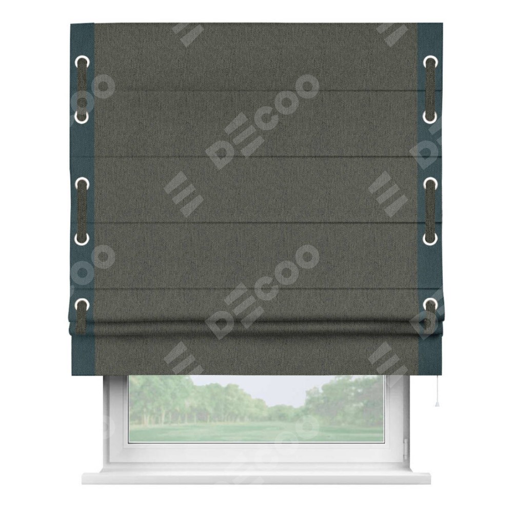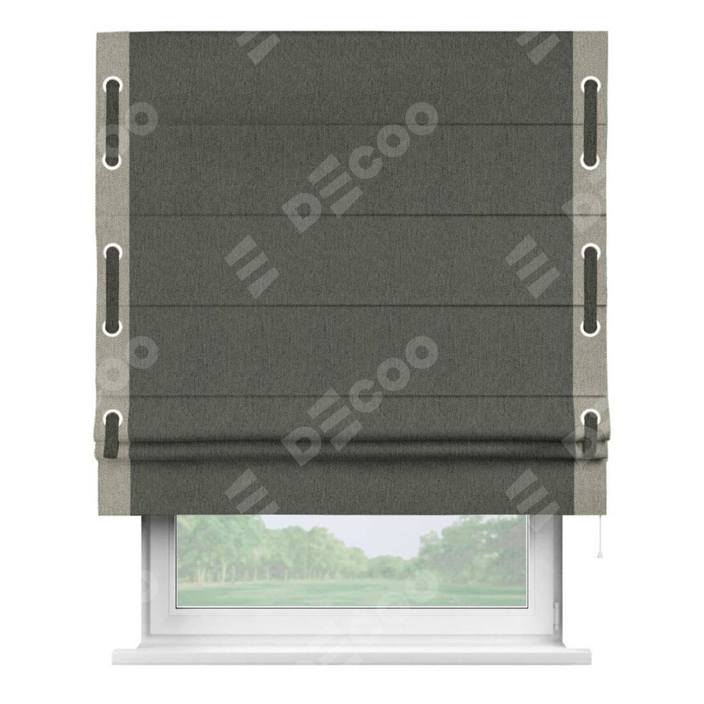 Римская штора «Кортин» с кантом Стрим Дуо (люверсы с пояском), для проема, ткань твид блэкаут, тёмно-серый
