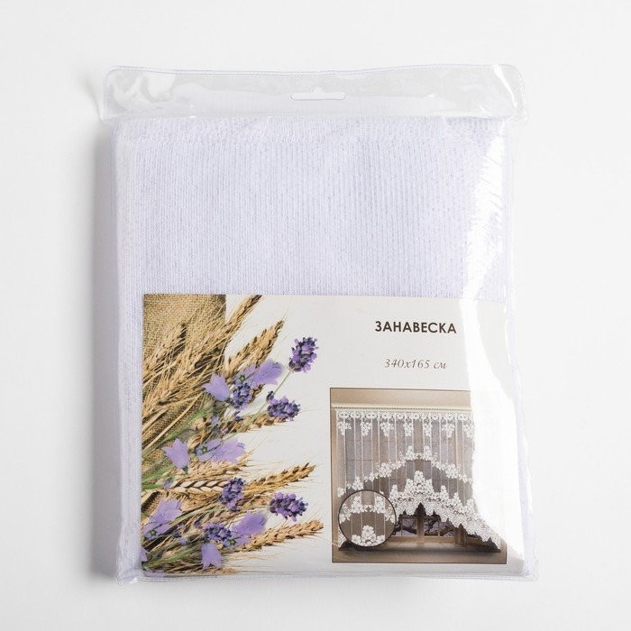 Тюль кухонная со шторной лентой), цвет белый, размер 165×340 см украсит помещение и обновит внешний вид кухни. Изящное цветочное оформление и невесомая фактура подчеркнут общий интерьер.