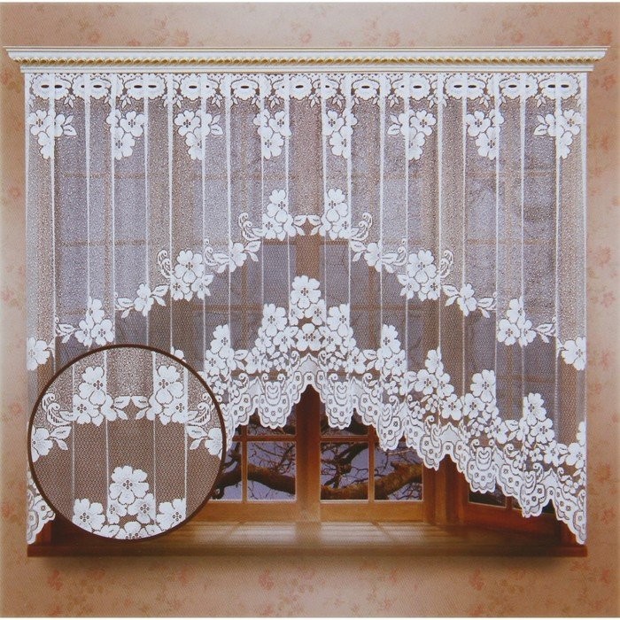 Тип тюли: Готовый, Короткий, С рисунком, С цветами, Тюль-арка
