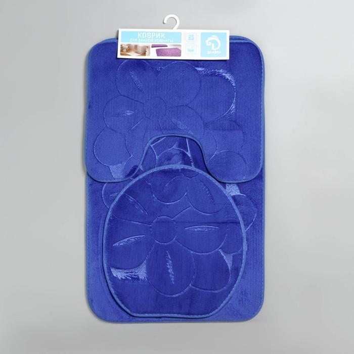 Набор ковриков для ванны и туалета Доляна, 3 шт: 36×43, 40×50, 50×80 см, цвет синий