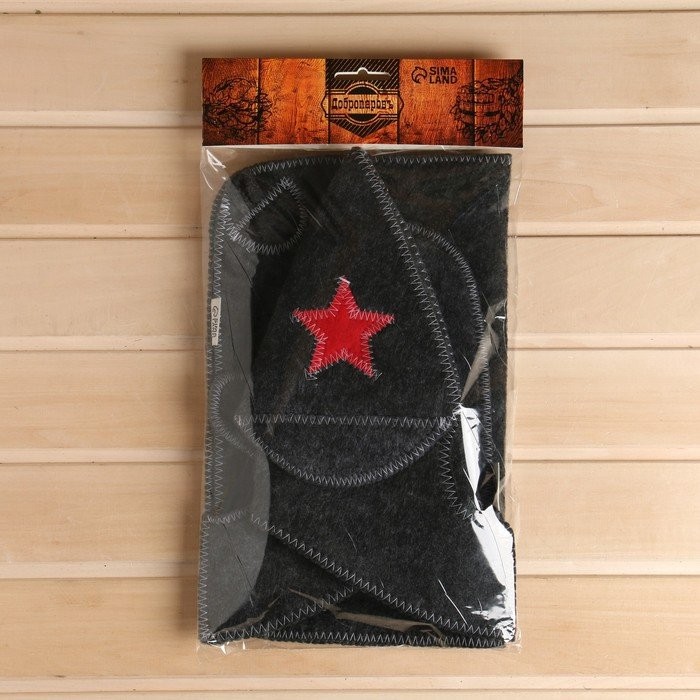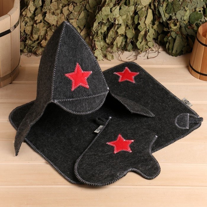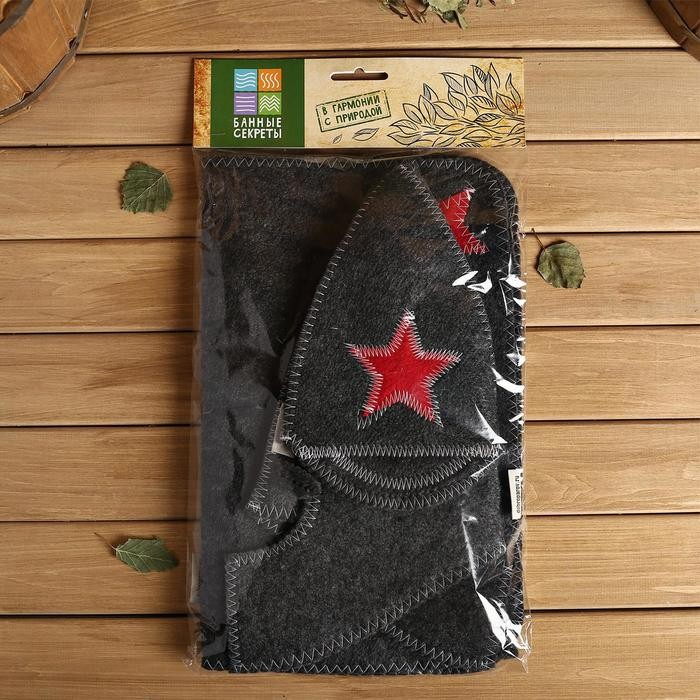 Набор для бани «Буденовец» серый: шапка, коврик, рукавица