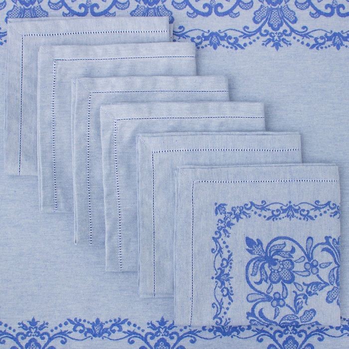 Столовый набор «Этель» (скатерть 150×300 см, салфетки 45×45 см — 12 шт.) цвет синий, хл. с ВМГО