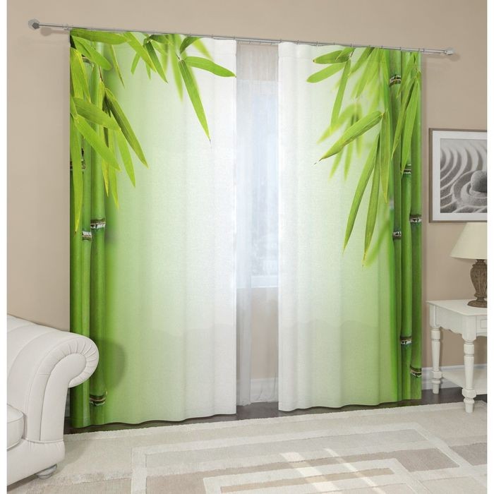 Комплект штор «Листья бамбука», размер 145×260 см, 2 шт., габардин