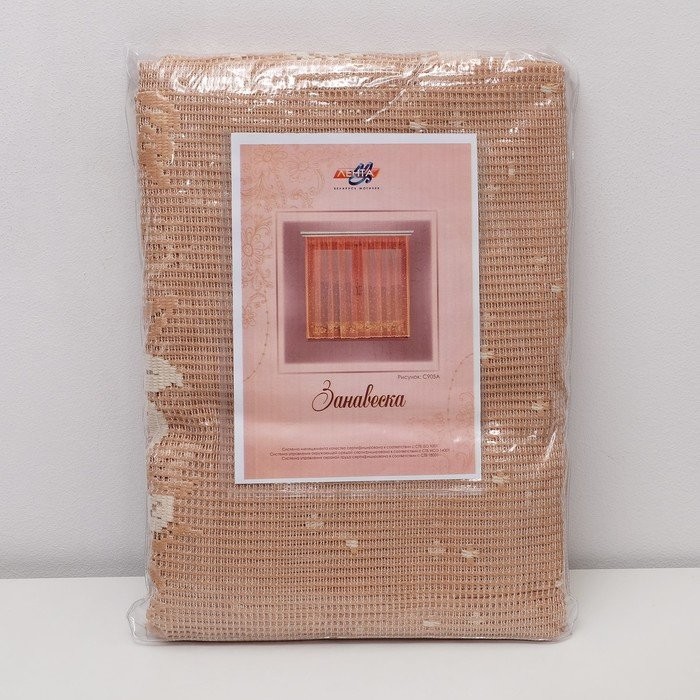 Тюль кухонная на шторной ленте 235×160 см, цв.беж.с, арт.р.С905