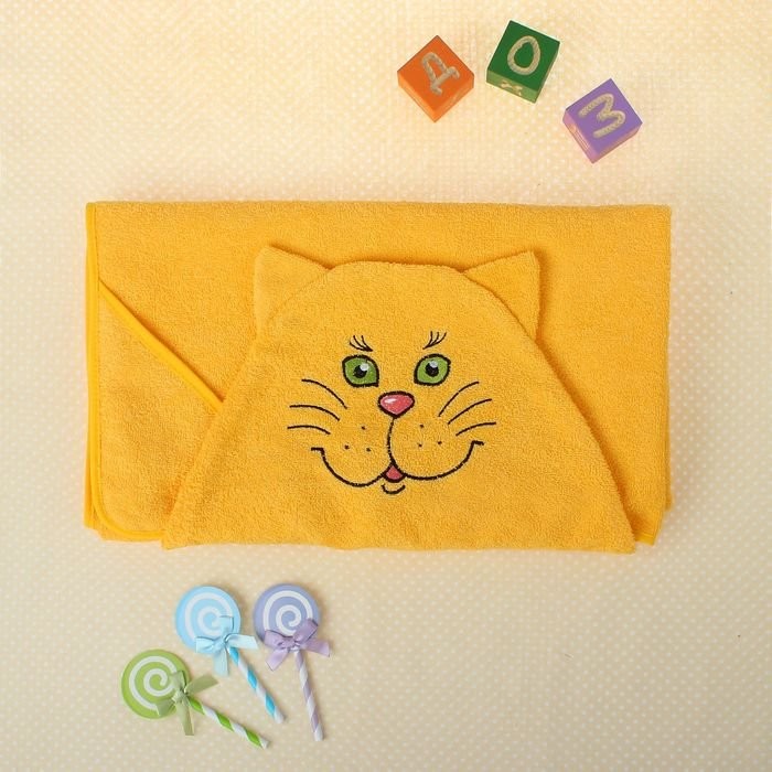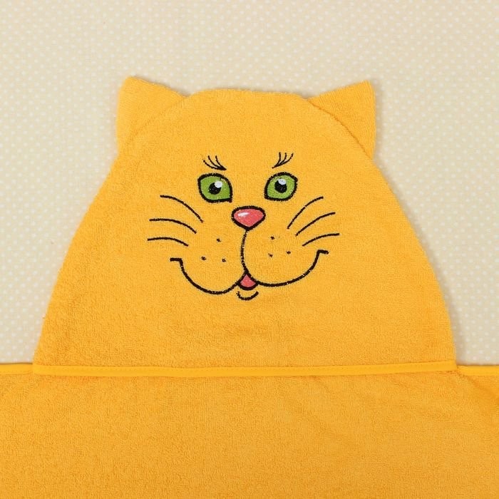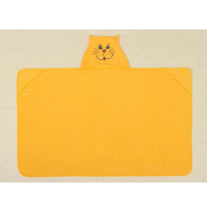 Полотенце-накидка махровое котик, 75×125 см, желтый, Хл, 300 г/м²